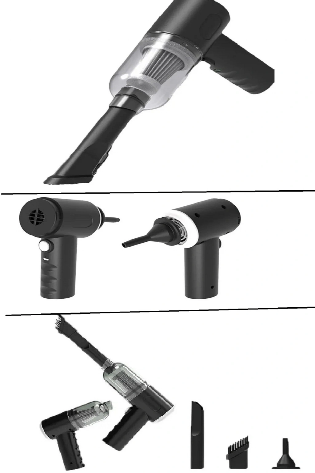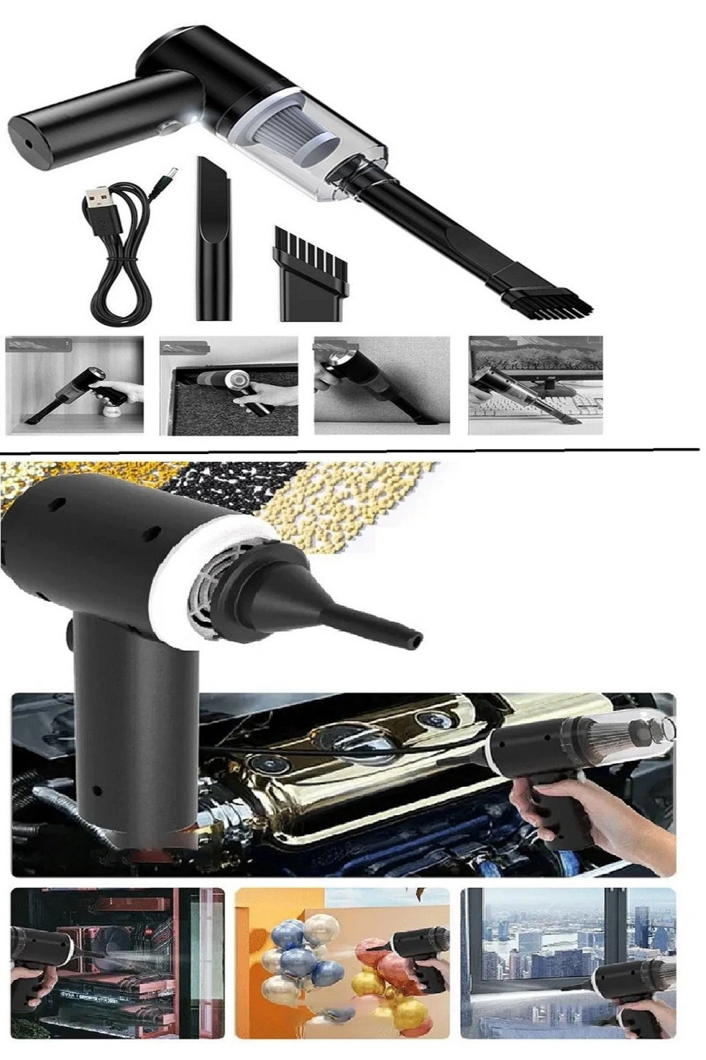 120 W Şarjlı El Süpürgesi Çekme – Üfleme Özellikli Ev Araba Klavye Süpürgesi Güçlü emiş gücü, yükseltilmiş dijital yüksek hızlı motor, 120W maksimum güç, rüzgar basıncı arttı, güçlü emiş gücü getirdi. Arabada toz, kalıntı, kurum, evcil hayvan kılı vb. Kablosuz el tasarımı, böylece elektrikli süpürge teller ile sınırlı değildir ve dağınık ortamı kolayca temizleyebilir. Sadece araçlar için değil, günlük ev ve ofis ortamları için de uygundur. LED ışıklar geniş bir açıyla aydınlatılır. Arabadaki alan küçüktür ve sağ açılı tasarım, elektrikli süpürgenin ölü köşeleri daha iyi temizlemek için hareket etmesini sağlar. Çatlaklarda karanlık köşeleri ve kirleri aydınlatmak için LED ışıkları ile donatılmıştır. 2000mAh lityum pil, pil ömrü 30 dakikaya ulaşabilir ve kullanılmadığı zaman 30 gün sürebilir. Görsel tasarımı benimsemek, toz kovasını istediğiniz zaman temizlemenin gerekli olup olmadığını hatırlatmak.Filtre elemanı su ile yıkanabilir ve tekrar tekrar kullanılabilir. Artık kokuyu önlemek için malzeme kaybı, çevre dostu zehirlenme kullanımı tur. Boyut sadece yaklaşık 16.5*14.5*4cm, hafif tasarım, zarif görünüm, el dengesi için özel olarak tasarlanmış ve uzun bir süre tutmak için yorucu değildir. Küçük boyutlu, kolay erişim için arabada veya yan kapı cebinde saklama kutusu yerleştirilebilir.Şartname:Adı: taşınabilir kablosuz araba elektrikli süpürgeMalzeme: ABS -Anma hızı: 62000r/dakGüç: 120w -Anma gerilimi: 12V -Pil kapasitesi: 2000mAhKullanım süresi: 30 dakika -Uygulama kapsamı: ev kullanımı, araç kullanımı, kıl ,-Renk: siyah/beyazBoyutu: yaklaşık 16.5*14.5*4cmAmbalaj dahil:1 Adet taşınabilir kablosuz araba elektrikli süpürge1 adet yedek filtre3 adet farklı ebatlarda başlıklar