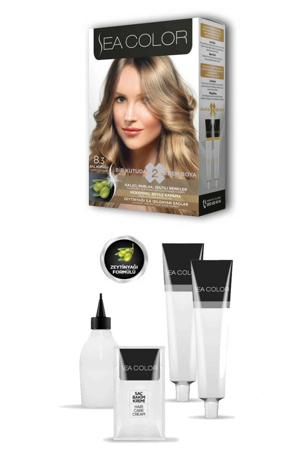 Sea Color 2 tüp Krem Saç Boyası Seti Bal Köpüğü No:8.3