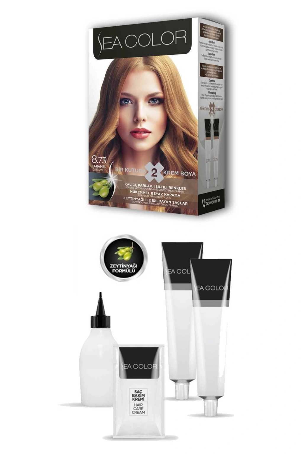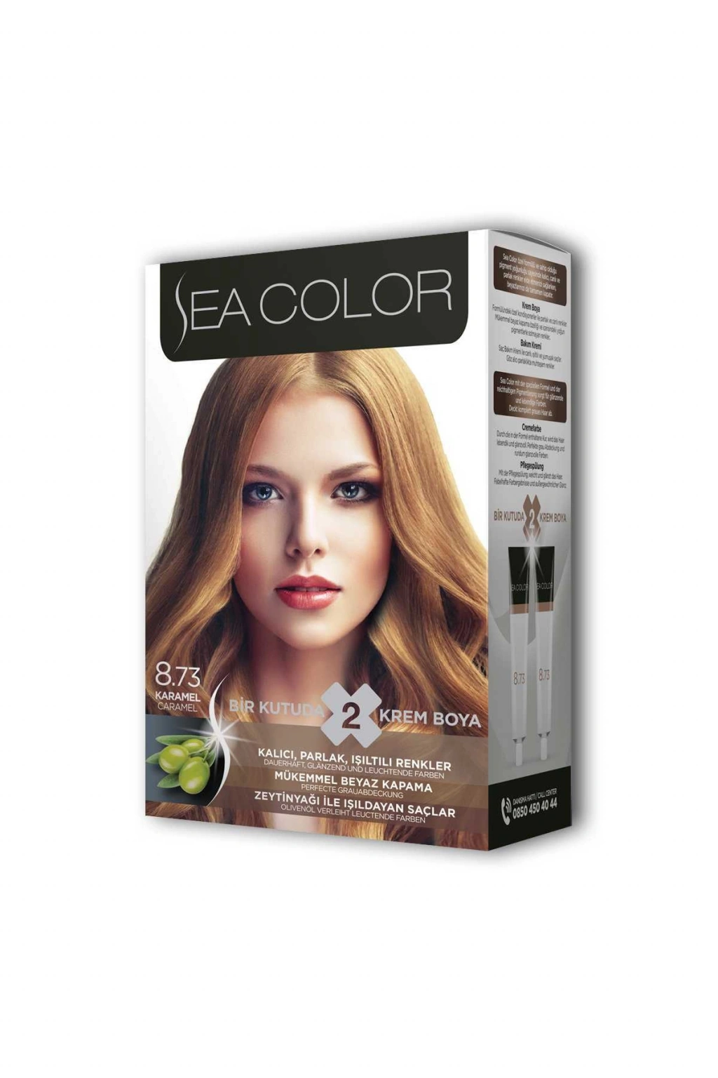 Sea Color 2 tüp Krem Saç Boyası Seti Karamel No:8.73