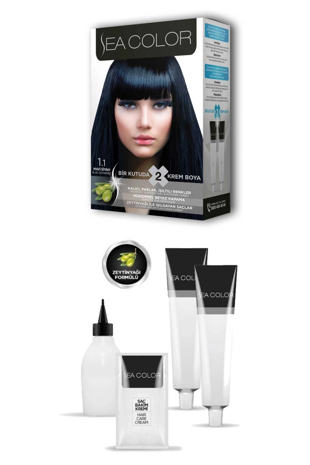 Sea Color 2 tüp Krem Saç Boyası Seti Mavi Siyah No:1.1