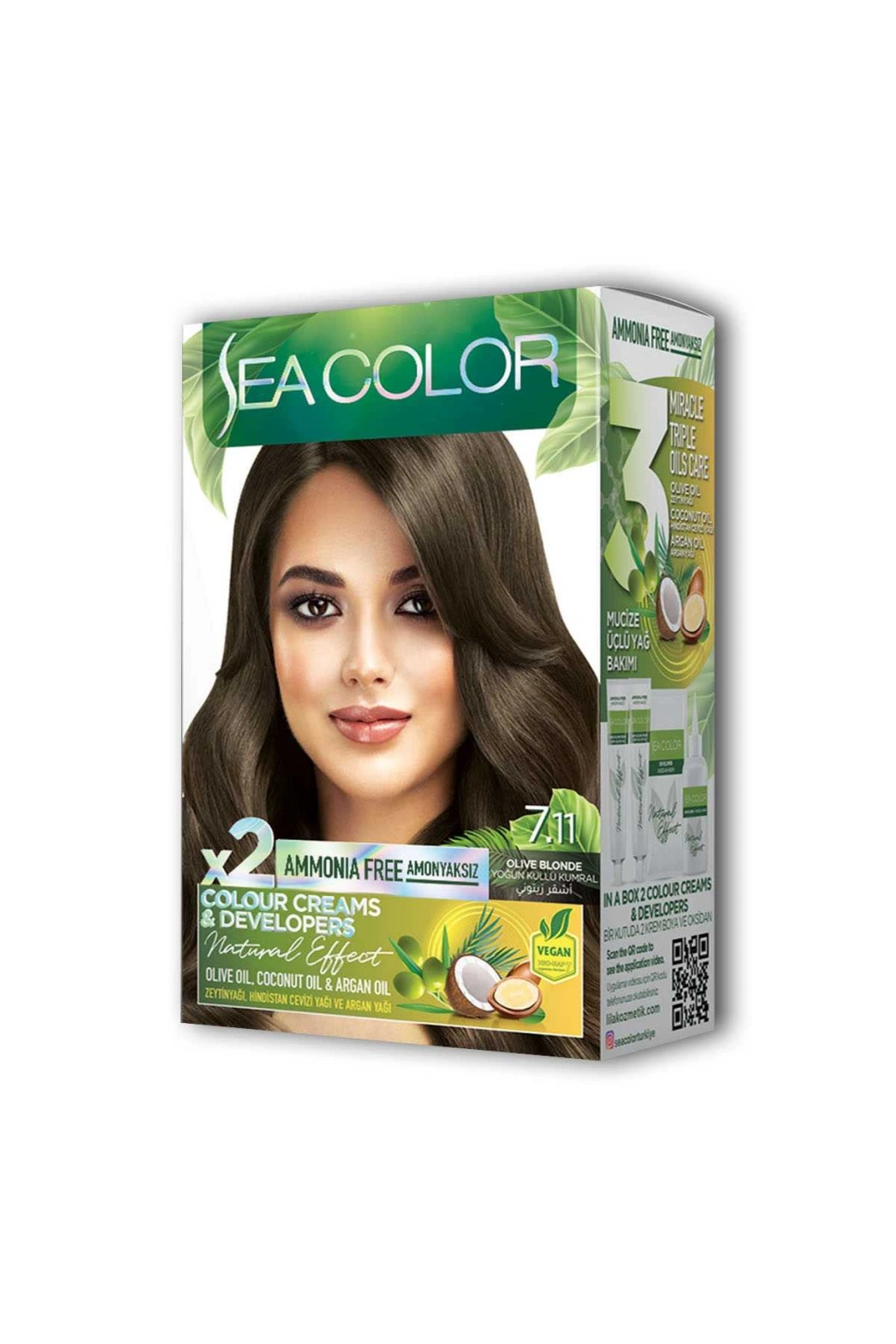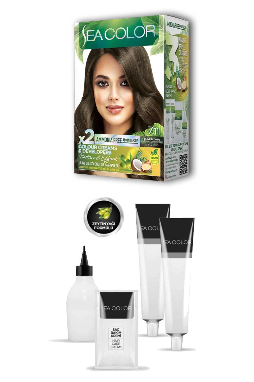 Sea Color 2 tüp Krem Saç Boyası Seti Yoğun Küllü Kumral No:7.11