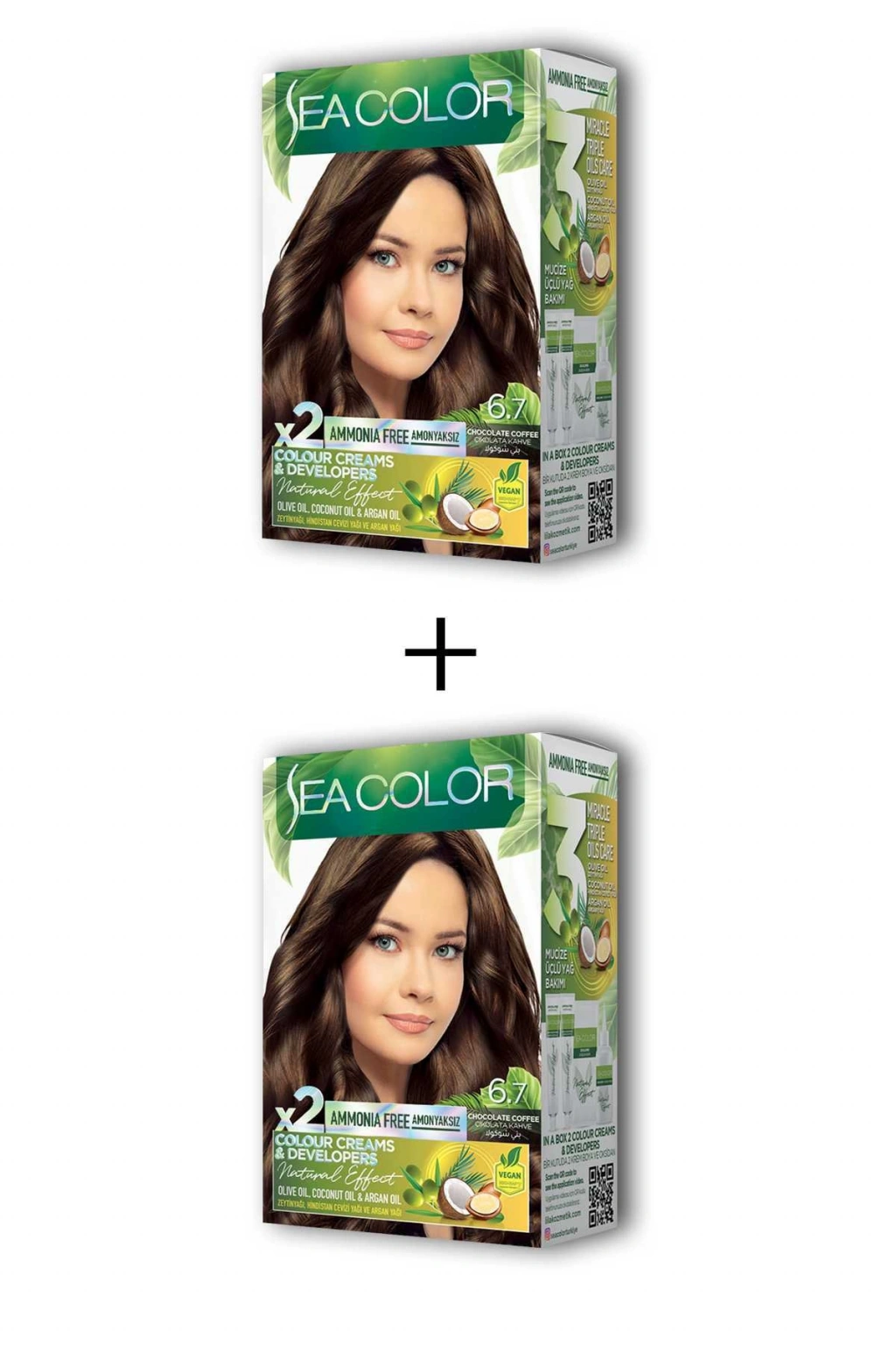 Sea Color 2X2 tüp Krem Saç Boyası Seti Çikolata Kahve No:6.7