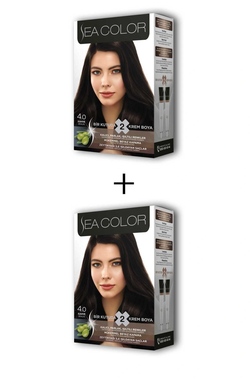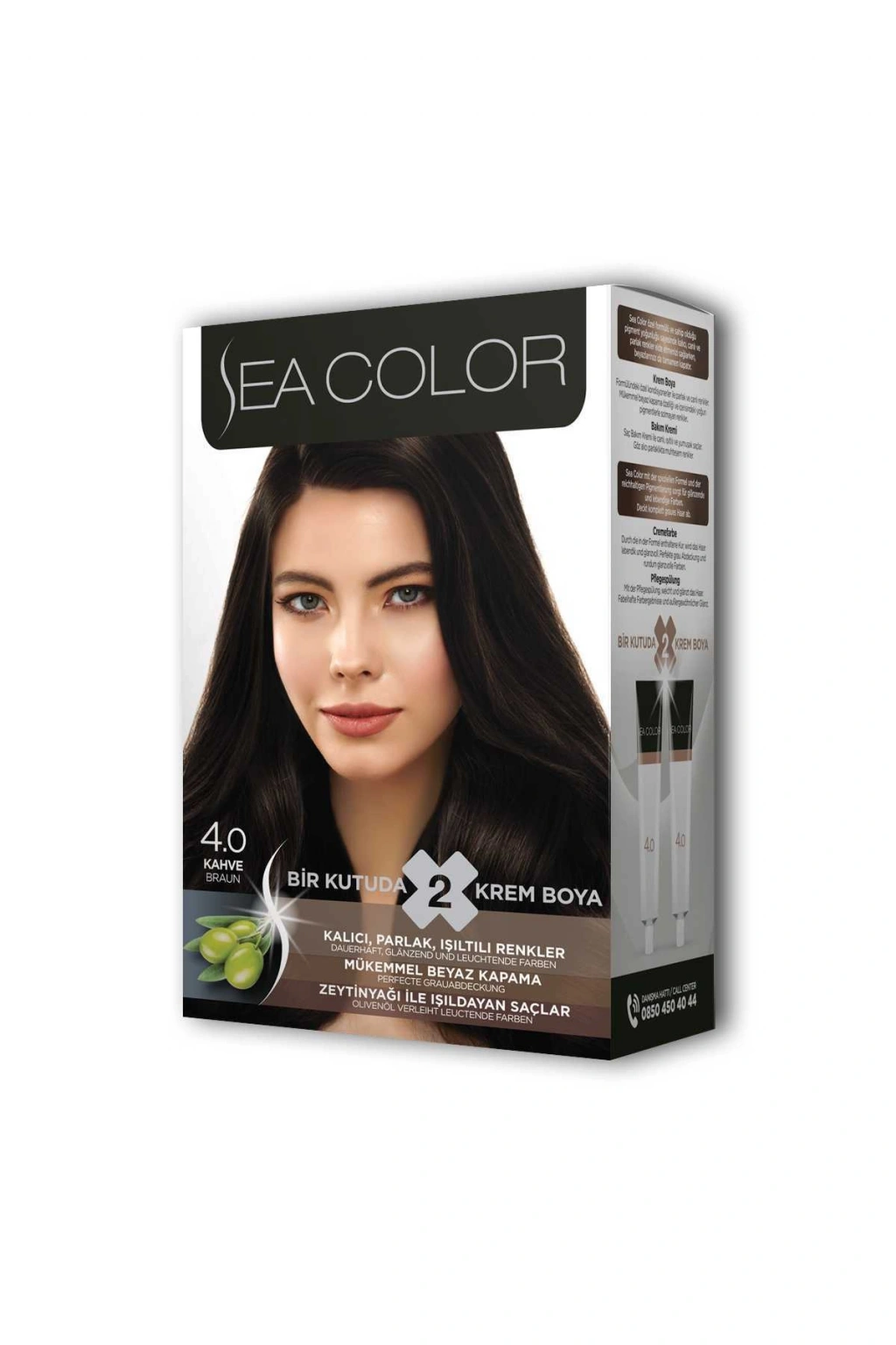 Sea Color 2X2 tüp Krem Saç Boyası Seti Kahve No:4.0