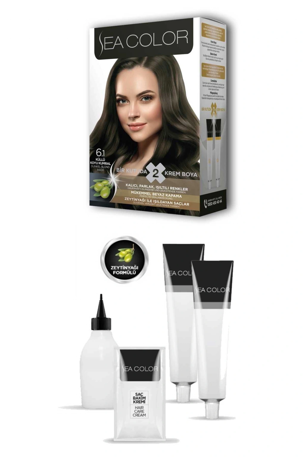 Sea Color 2X2 tüp Krem Saç Boyası Seti Küllü Koyu Kumral No:6.1