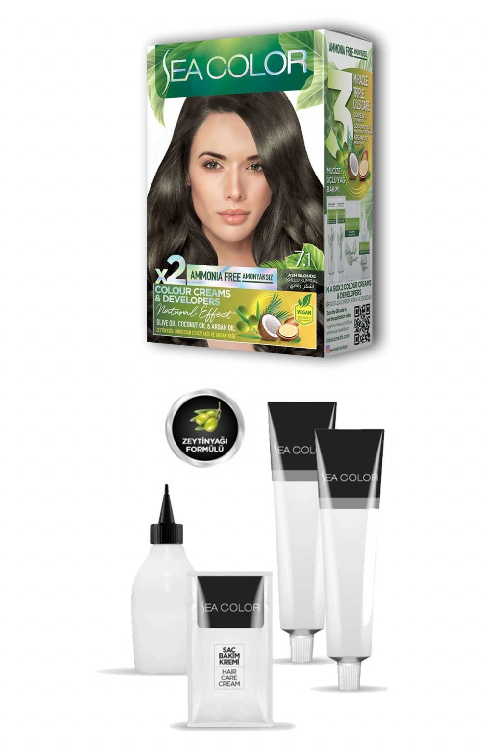 Sea Color 2X2 tüp Krem Saç Boyası Seti Küllü Kumral No:7.1