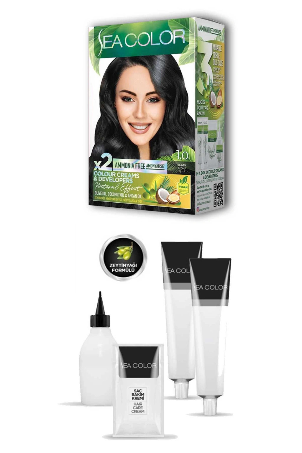 Sea Color 2X2 tüp Krem Saç Boyası Seti Siyah No:1.0