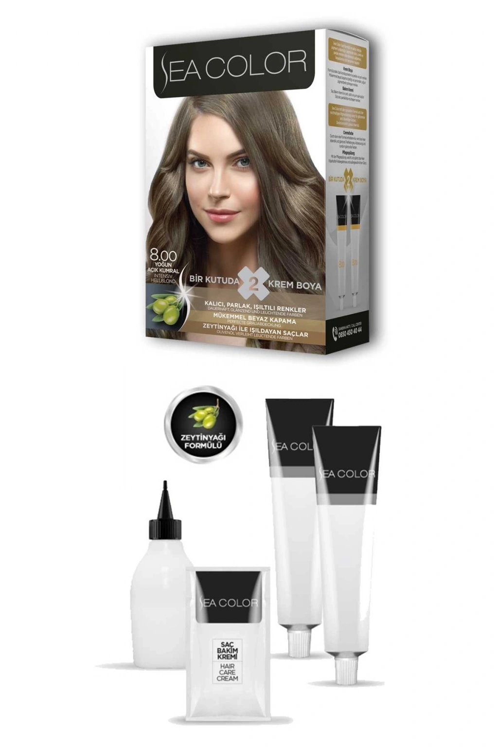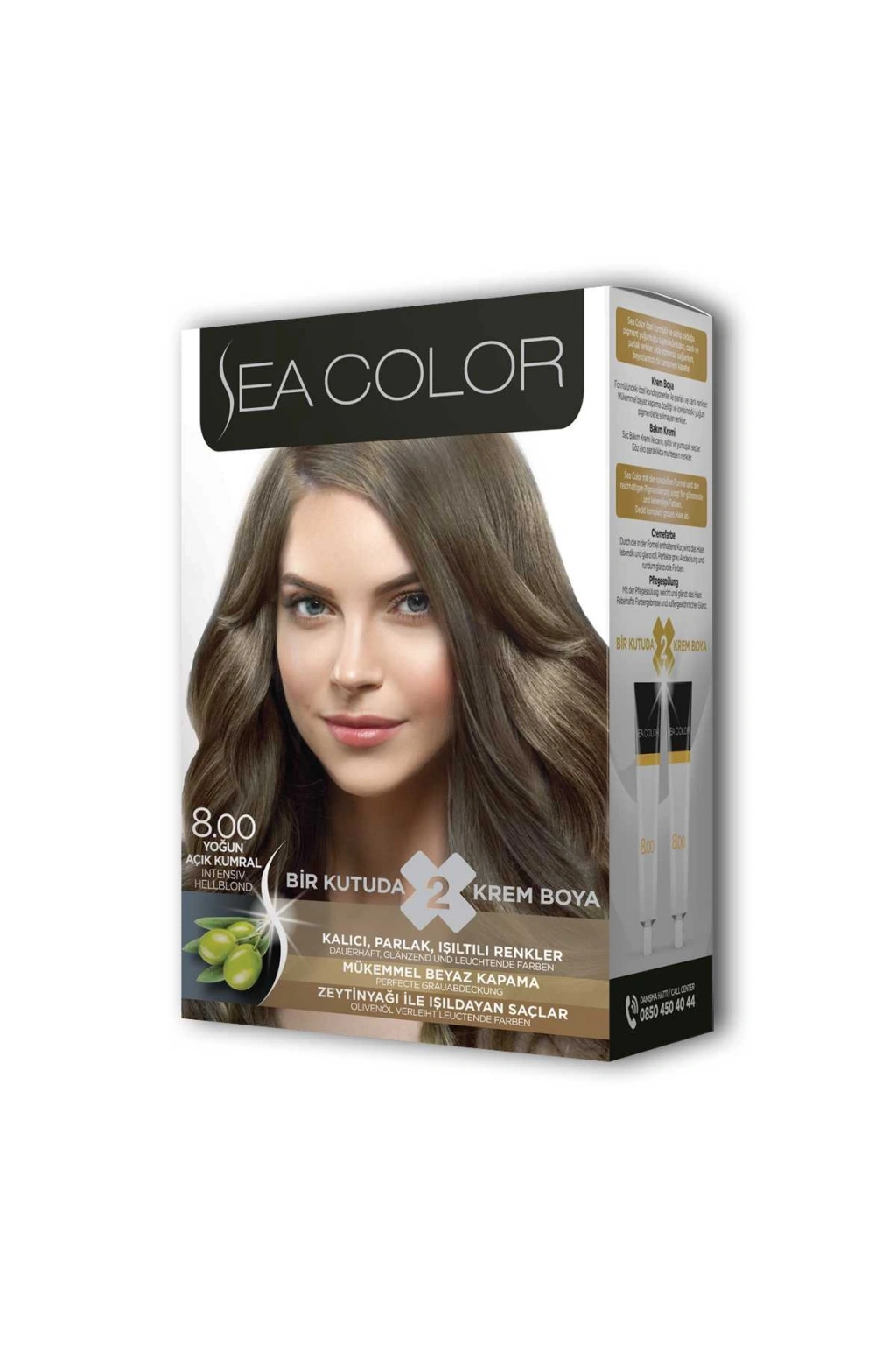 Sea Color 2X2 tüp Krem Saç Boyası Seti Yoğun Açık Kumral No:8.00
