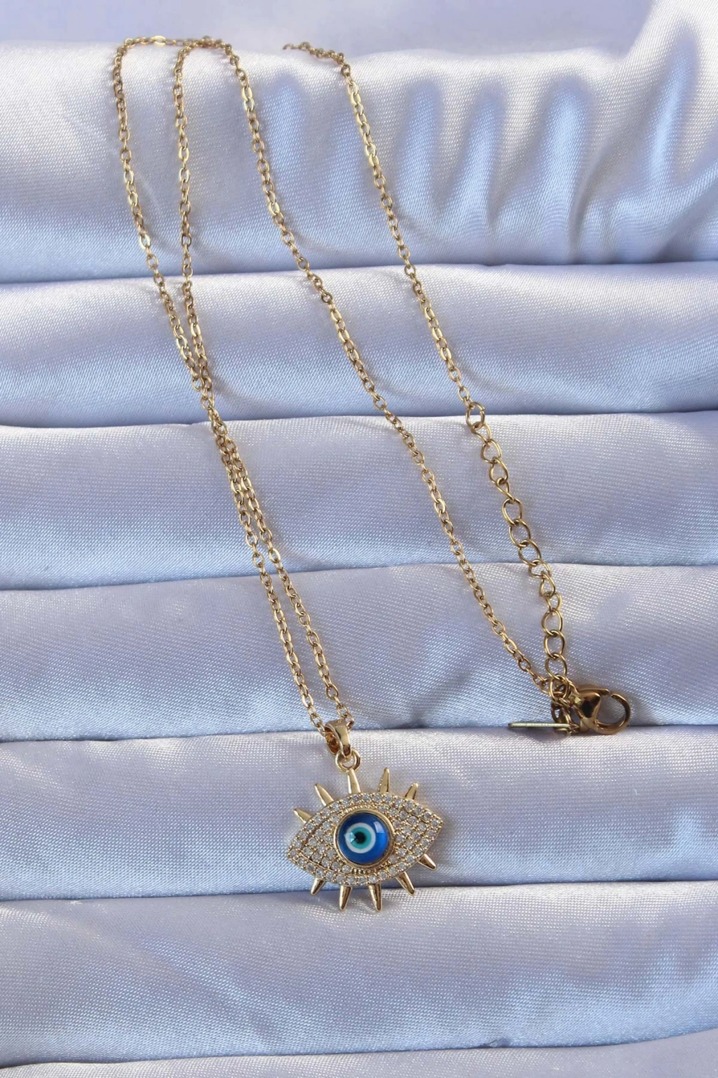 316L Altın Renk Zirkon Taşlı Nazarlı Göz Kolye