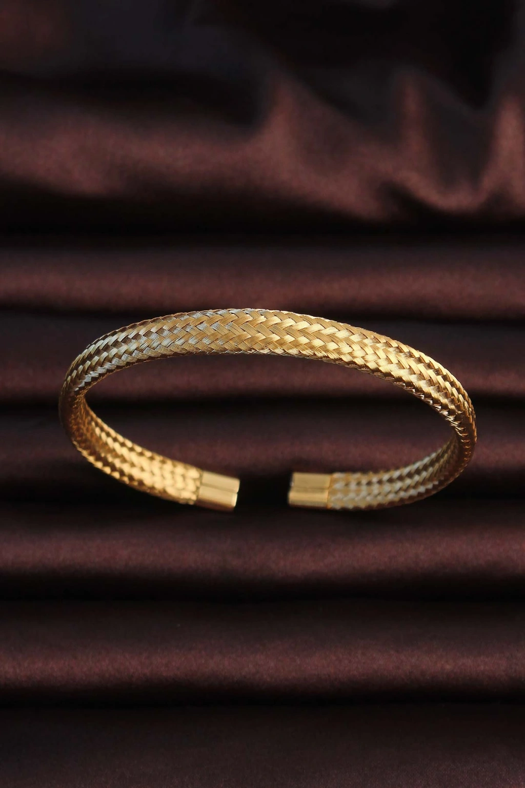316L Çelik Altın Renk Hasır Görünüm Erkek Bileklik