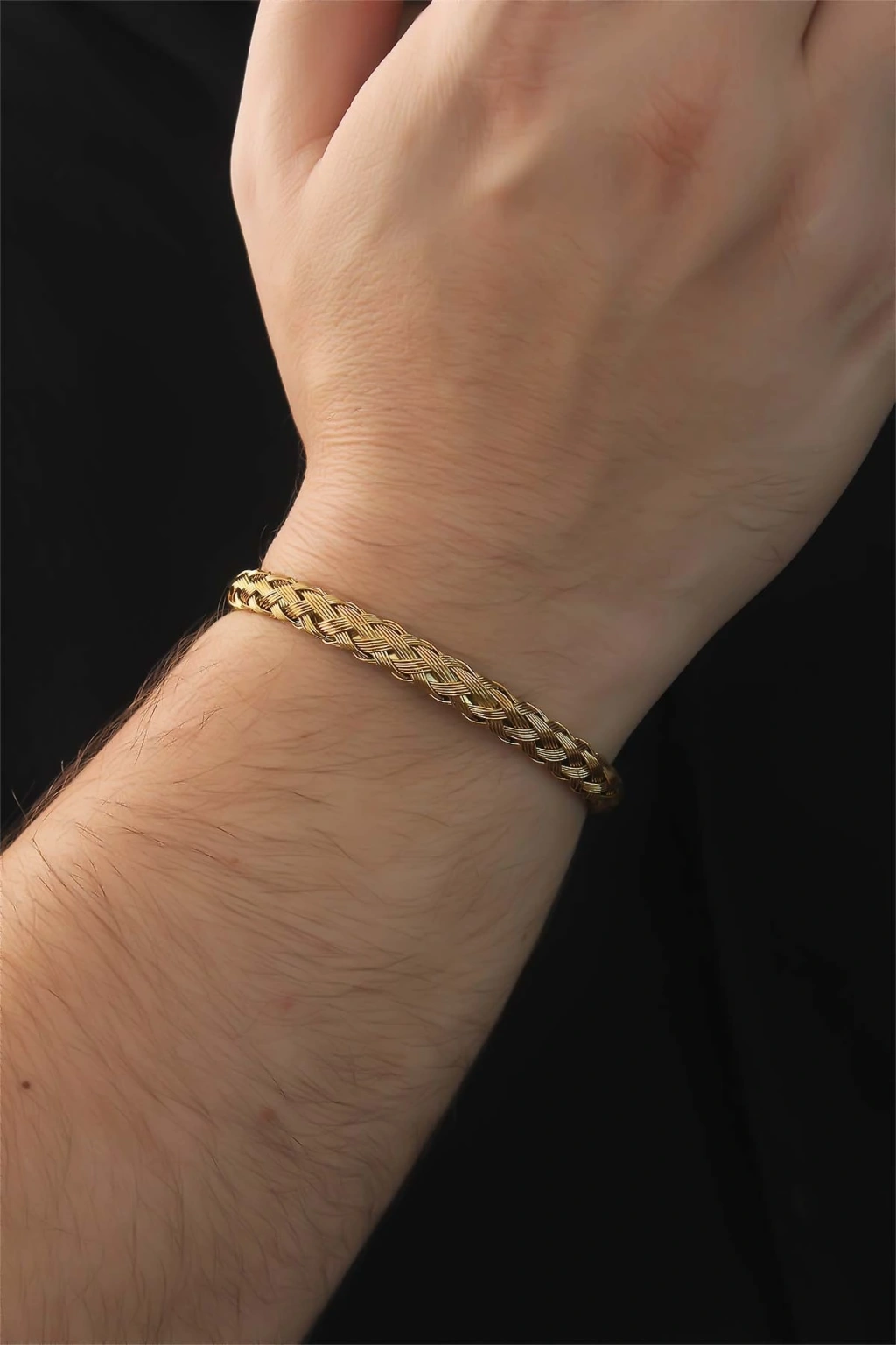 316L Çelik Gold Renk 7 mm Kalınlık Erkek Bileklik