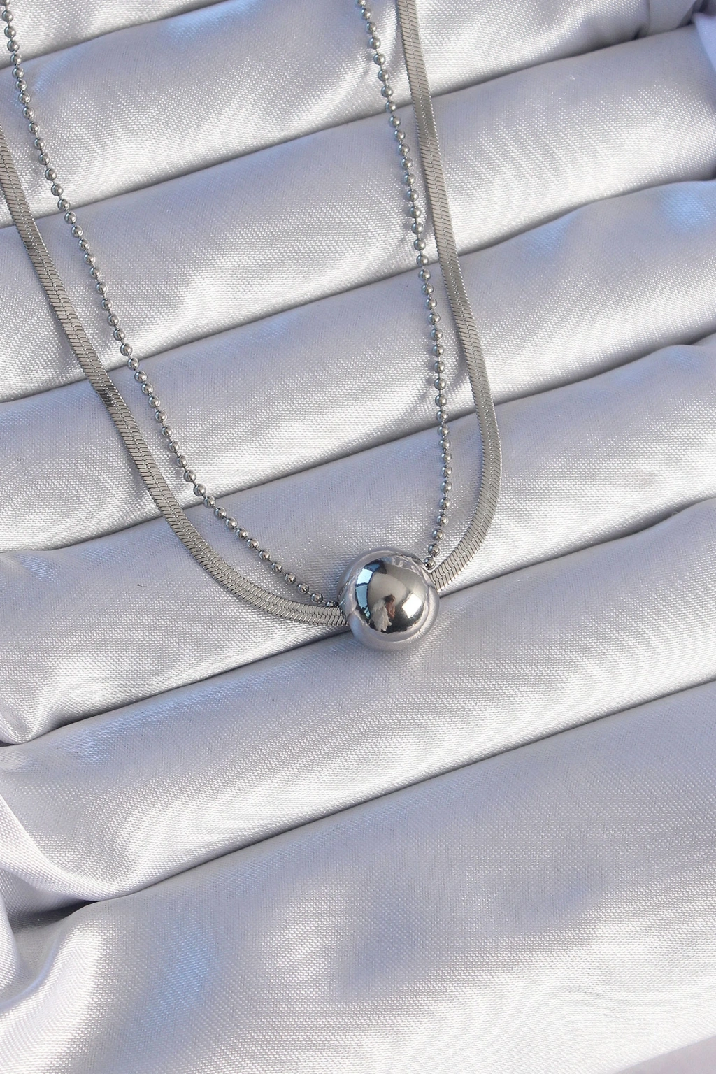 316L Çelik Çift Zincirli Gümüş Renk Topçuk İtalyan Model Kolye