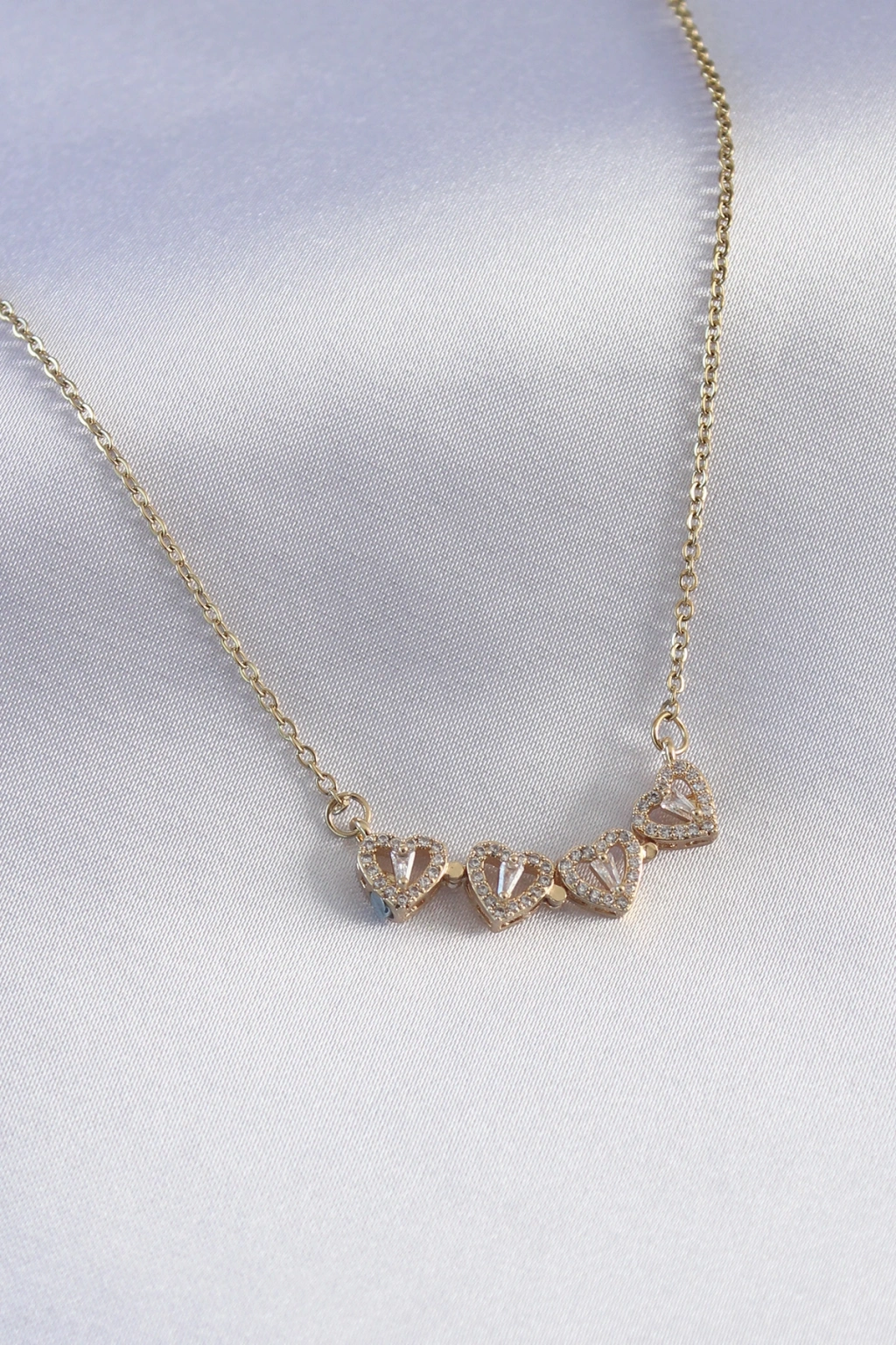 Kalp Detaylı Gold Renk Pirinç Kadın Kolye