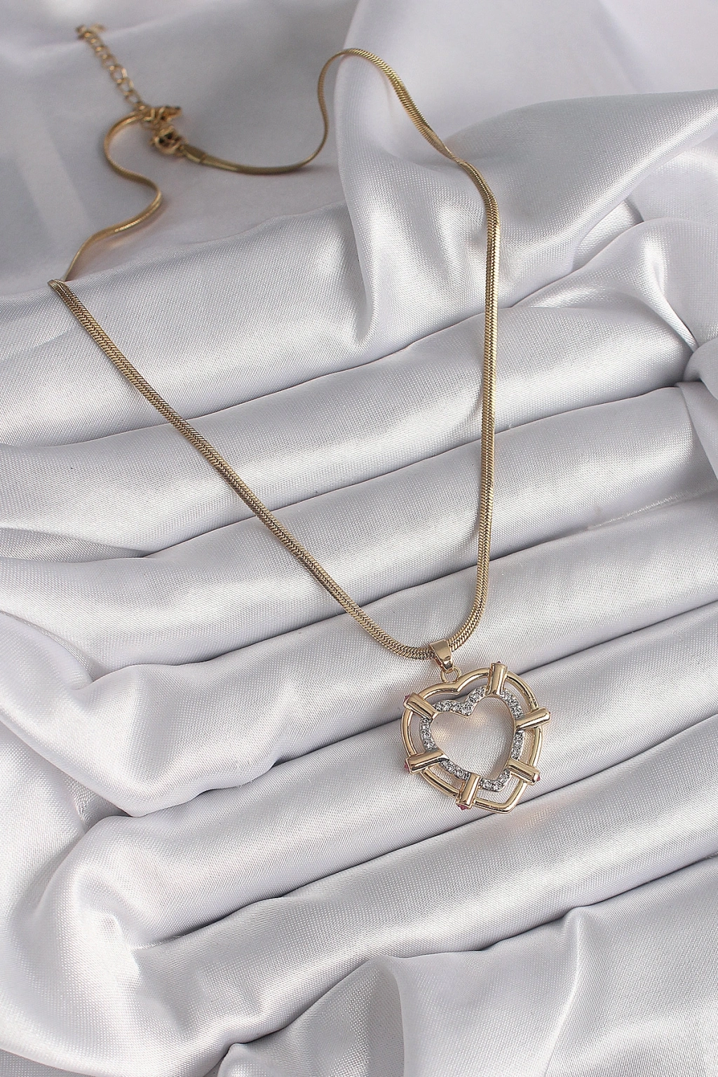 Kalp Detaylı Gold Renk Pirinç Kadın Kolye