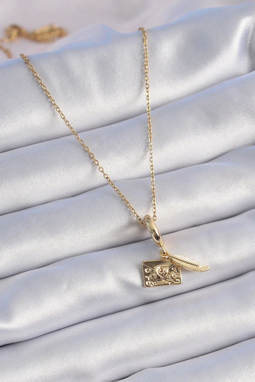 316L Çelik Gold Renk Kalp Detay Mektup Figür Charm Model Kadın Kolye