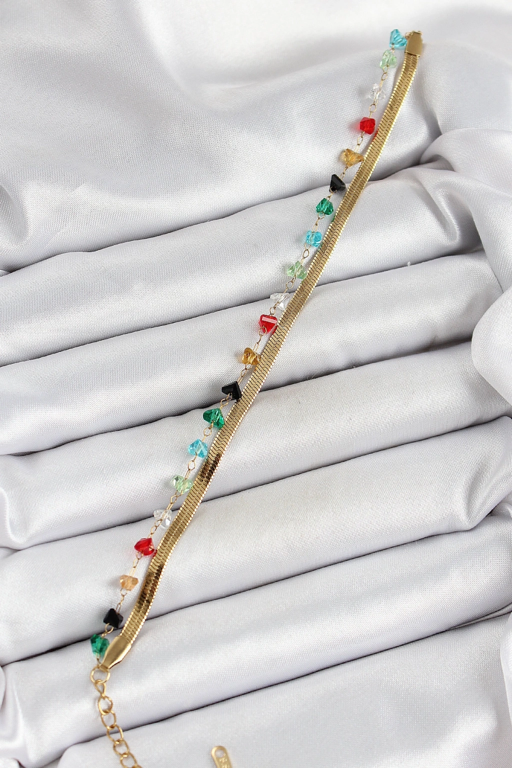 316L Çelik Gold Renk Kristal Karışık Renkli Taşlı 2'li Kadın Bileklik