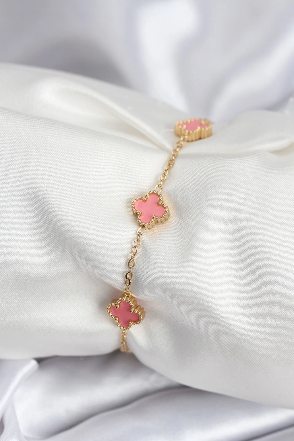 316L Çelik Gold Renk Pembe Baby Boy Yonca Kadın Bileklik