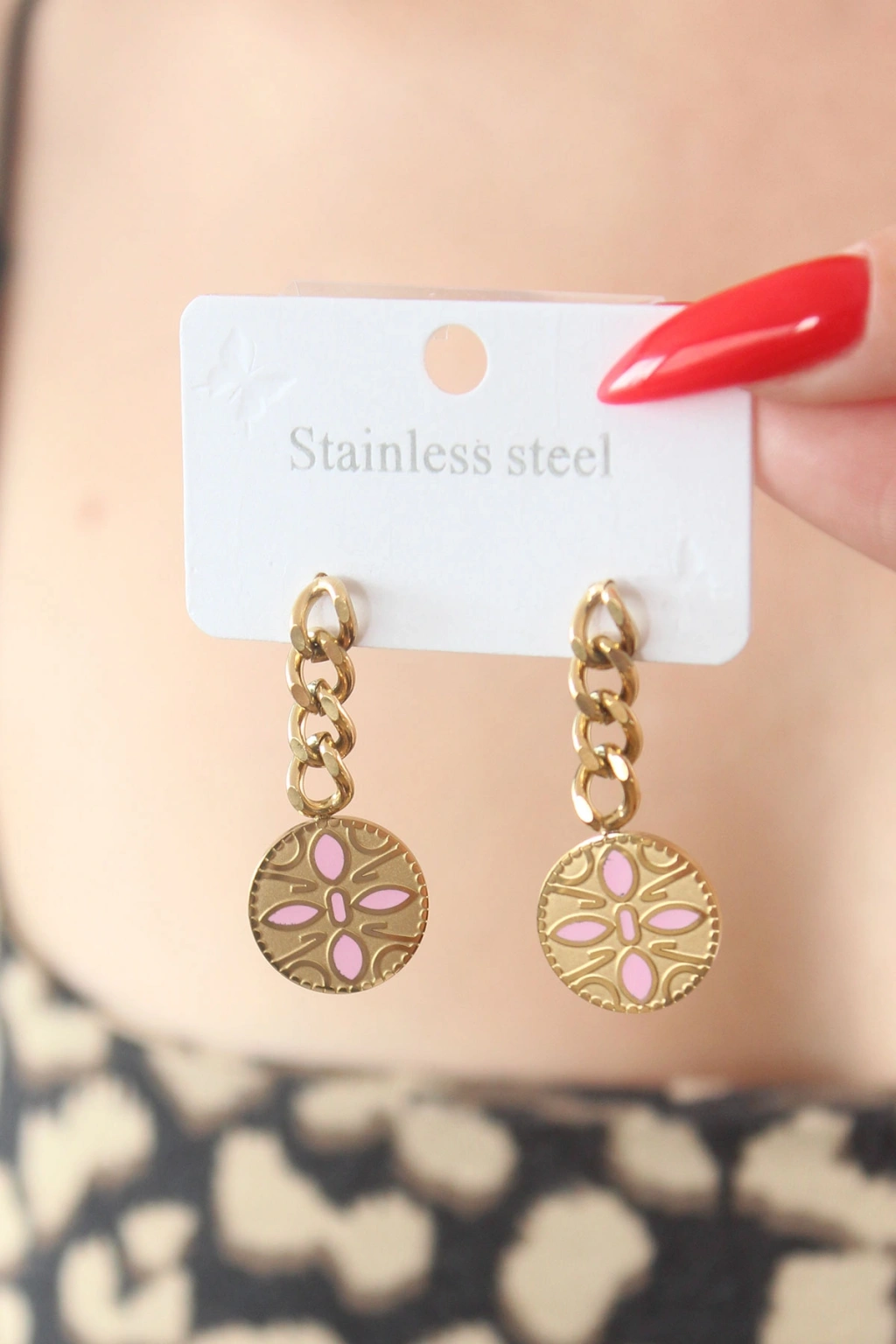 316L Çelik Gold Renk Sallantı Çiçek Model İşleme Detay Kadın Küpe