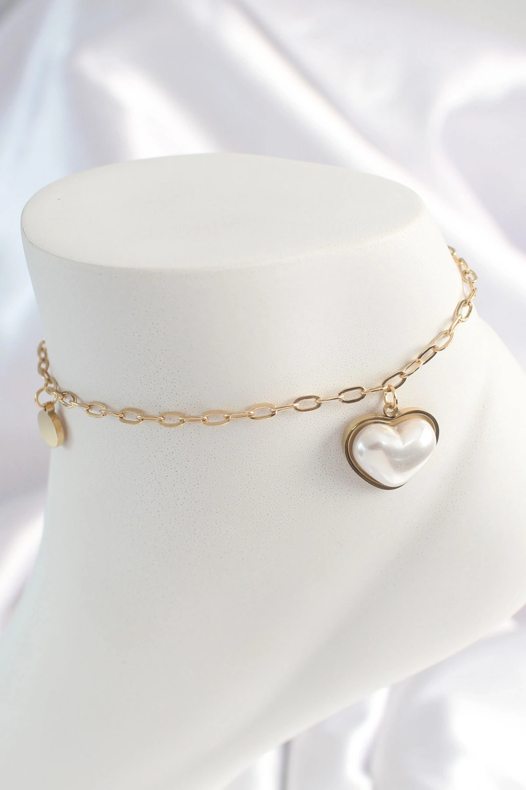 316L Çelik Gold Renk Zincir Model 3D İnci Kalp Model Kadın HalHal
