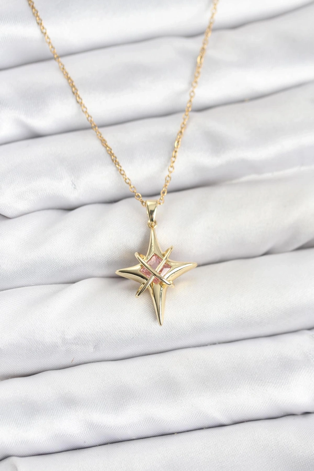 316L Çelik Gold Renk Zirkon Taşlı Kutup Yıldızı Model Kadın Kolye