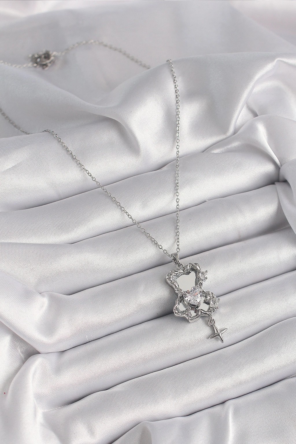 316L Çelik Gümüş Renk Ayna Ayıcık Model Zirkon Taşlı Kalp Detay Kadın Kolye