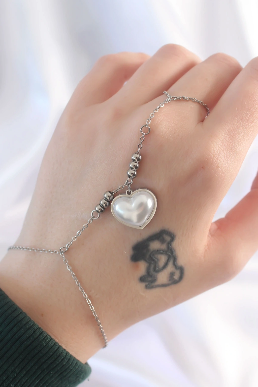 316L Çelik Gümüş Renk Beyaz Bubble Kalp Tasarımlı Şahmeran