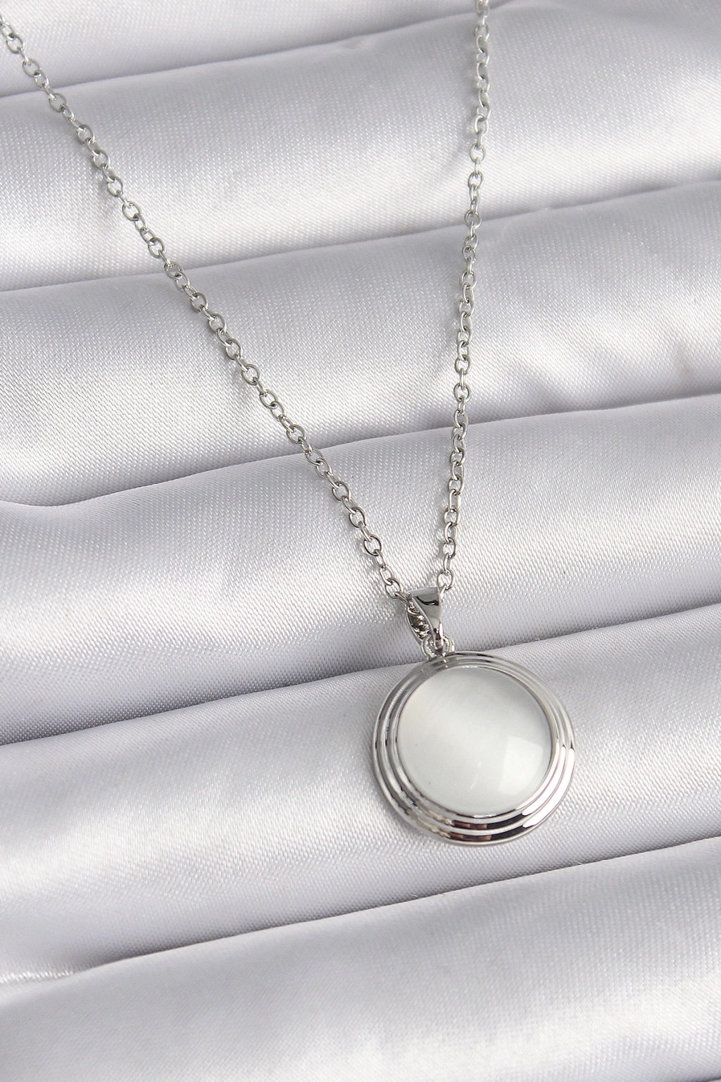 316L Çelik Gümüş Renk Beyaz Sedefli Daire Model Kadın Kolye