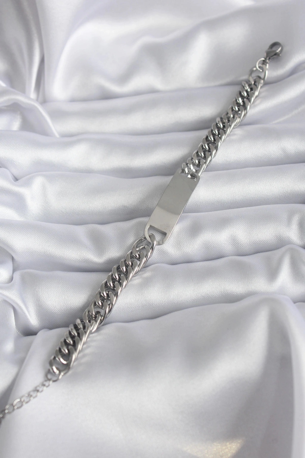 316L Çelik Gümüş Renk İsim Yazılabilir Plaka Model Kadın Bileklik