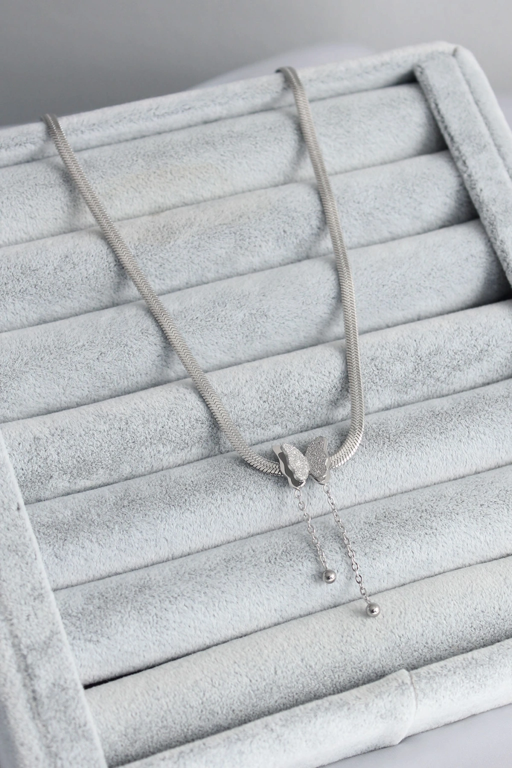 316L Çelik Gümüş Renk İtalyan Zincir Model Simli Kelebek Figür Kadın Kolye