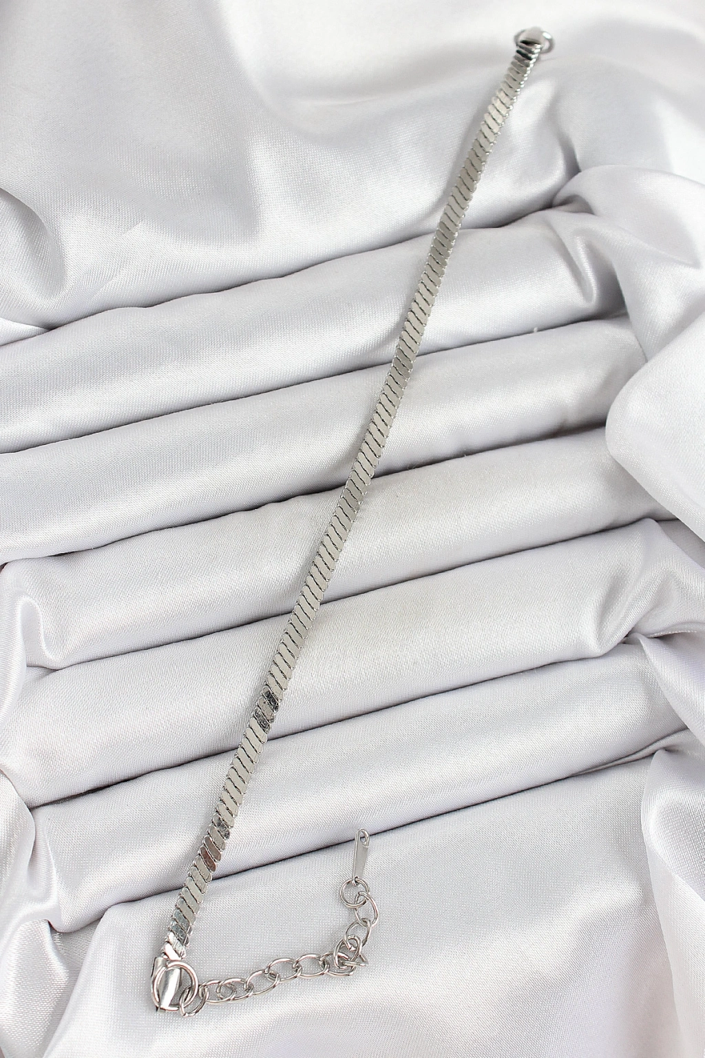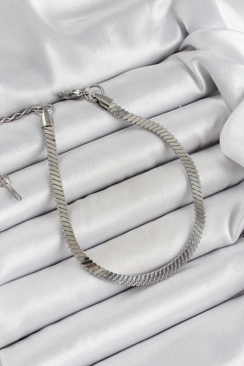 316L Çelik Gümüş Renk Yassı Zincir Model Kadın Bileklik