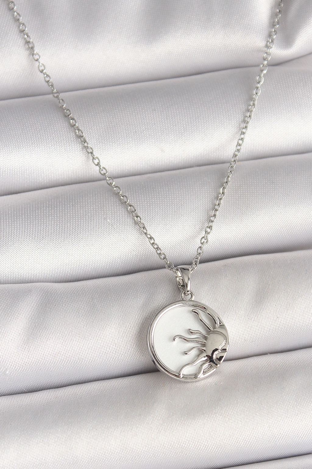 316L Çelik Gümüş Renk Zincir Beyaz Mineli Gün Batımı Model Kadın Kolye