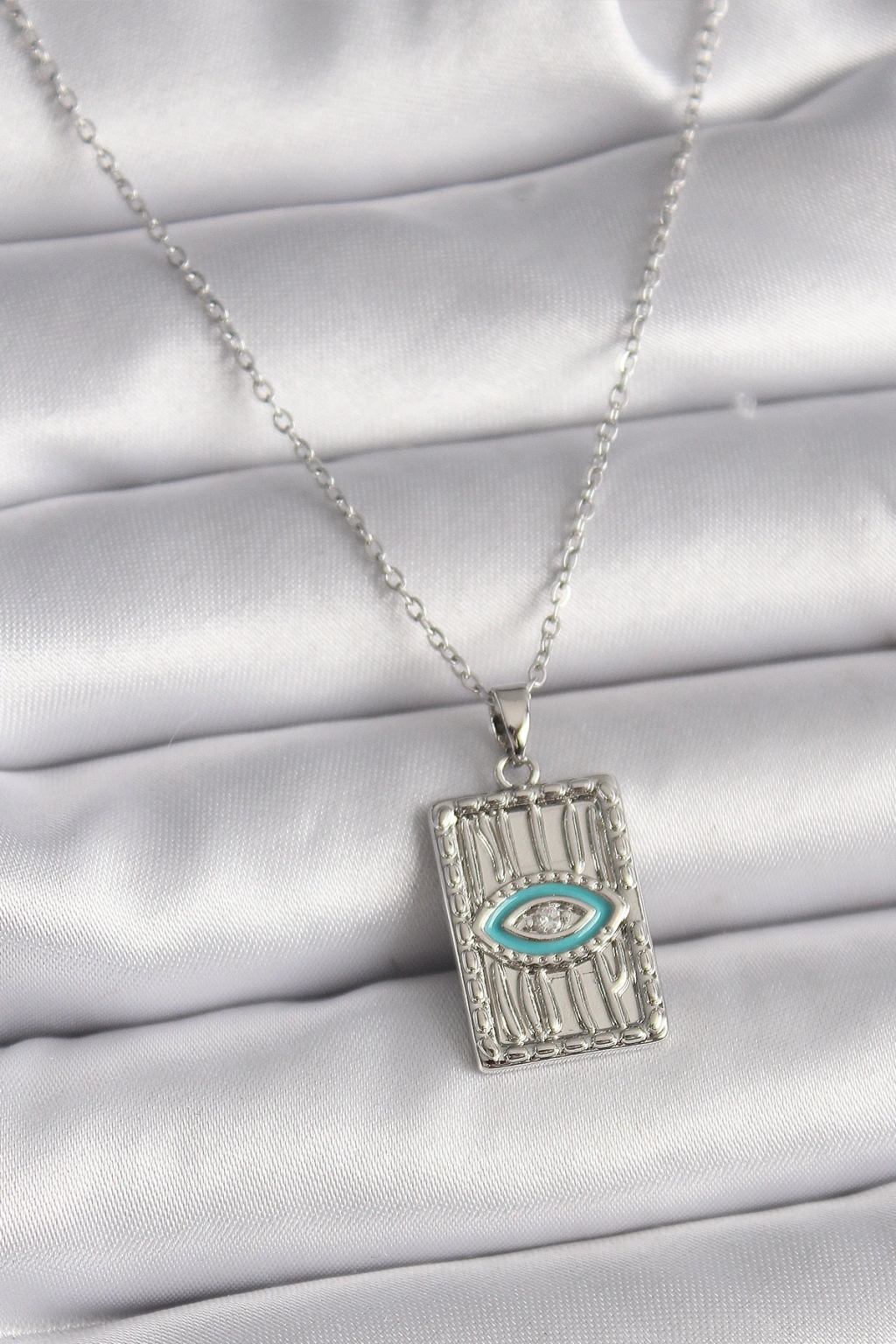 316L Çelik Gümüş Renk Zincir Göz İşlemeli Madalyon Model Kadın Kolye