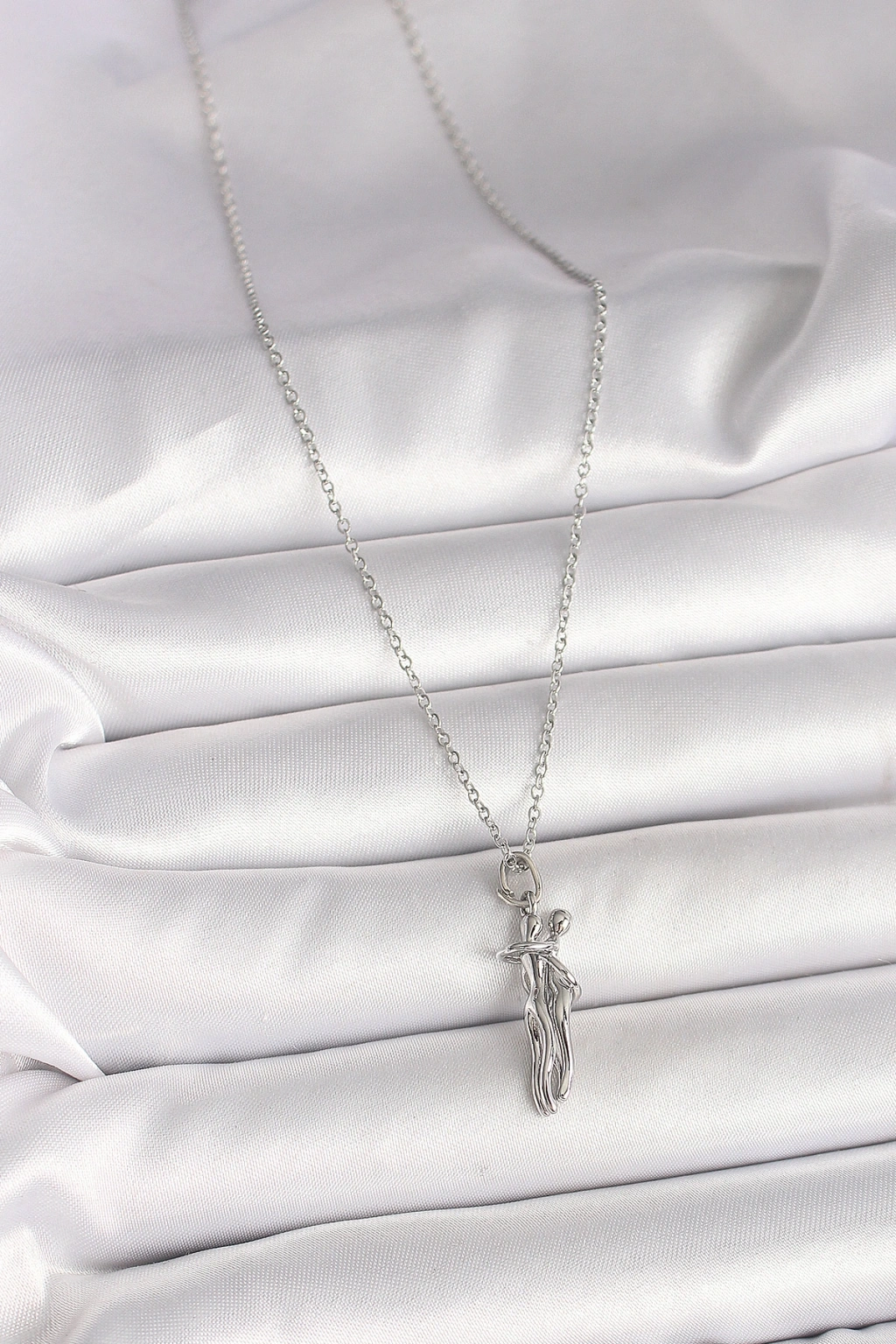 316L Çelik Gümüş Renk Zincir Sarılma Model Kadın Kolye