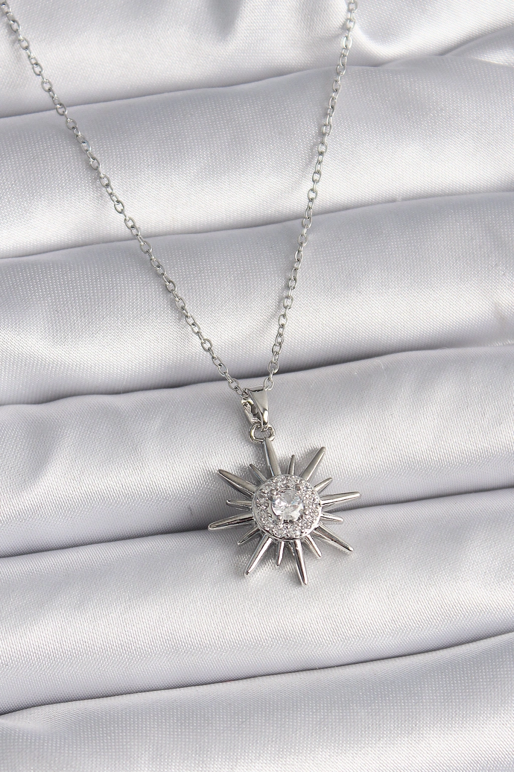 316L Çelik Gümüş Renk Zincir Zirkon Taşlı Güneş Model Kadın Yüzük