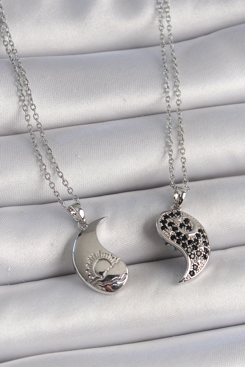 316L Çelik Gümüş Renk Zincir Zirkon Taşlı Ying Yang Model Gün Batımı İşlemeli Arakdaşlık Kadın Kolye