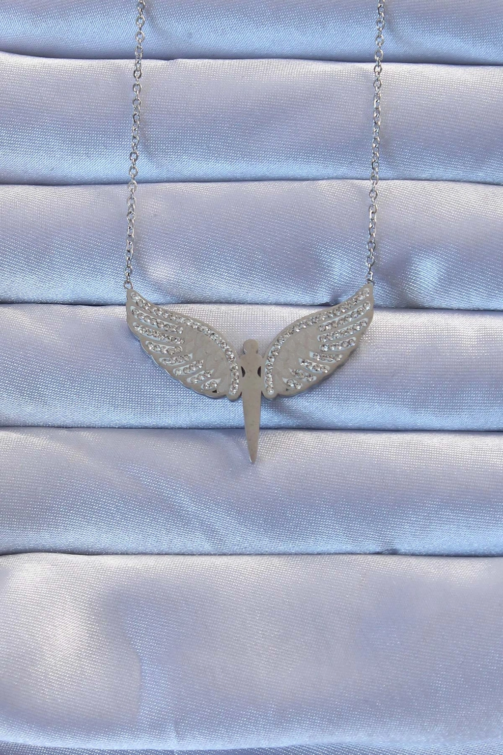 316L Çelik Gümüş Renk Zirkon Taşlı Mikail Kolye