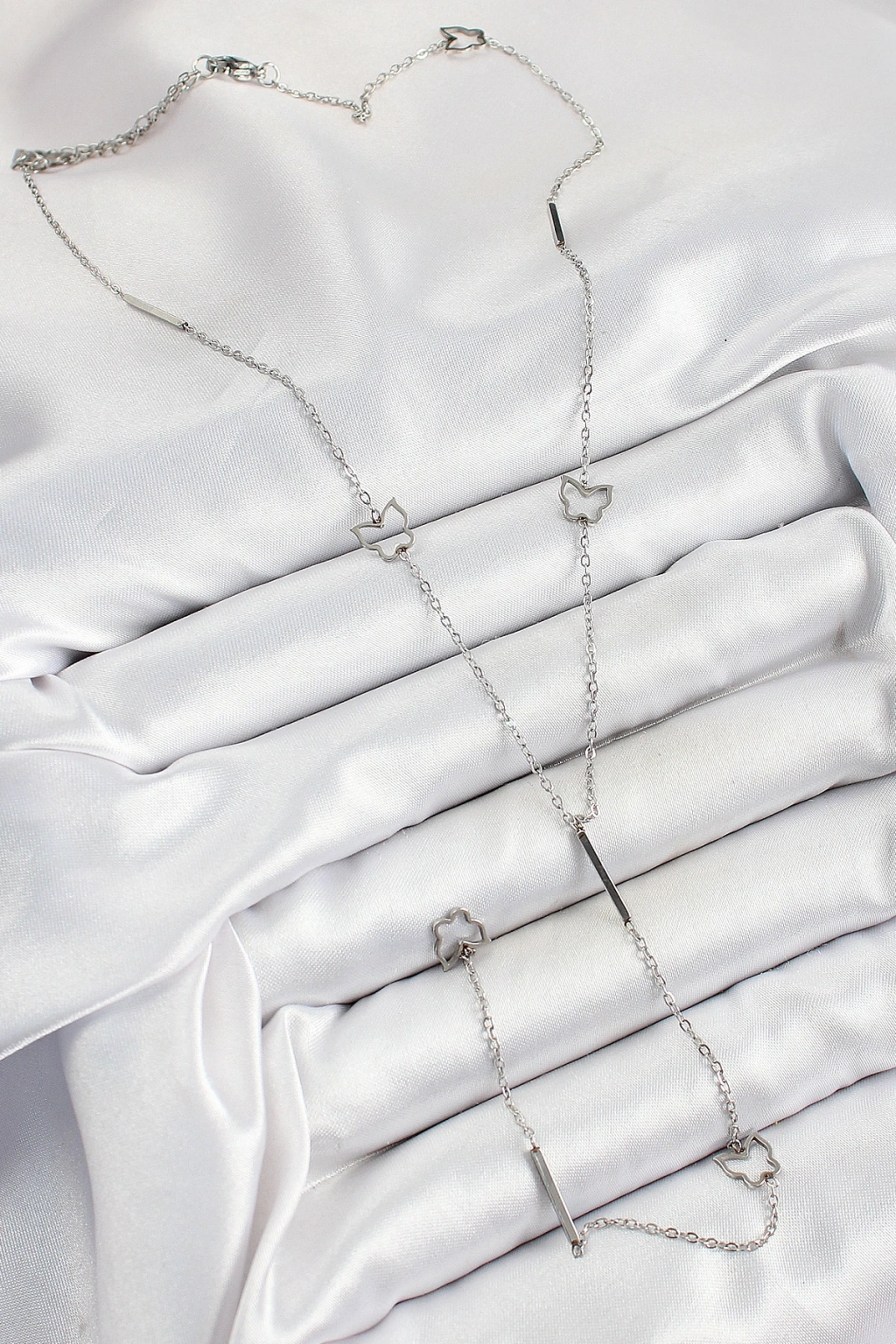 316L Çelik Kelebek Figürlü Y Model Gümüş Renk Kadın Kolye
