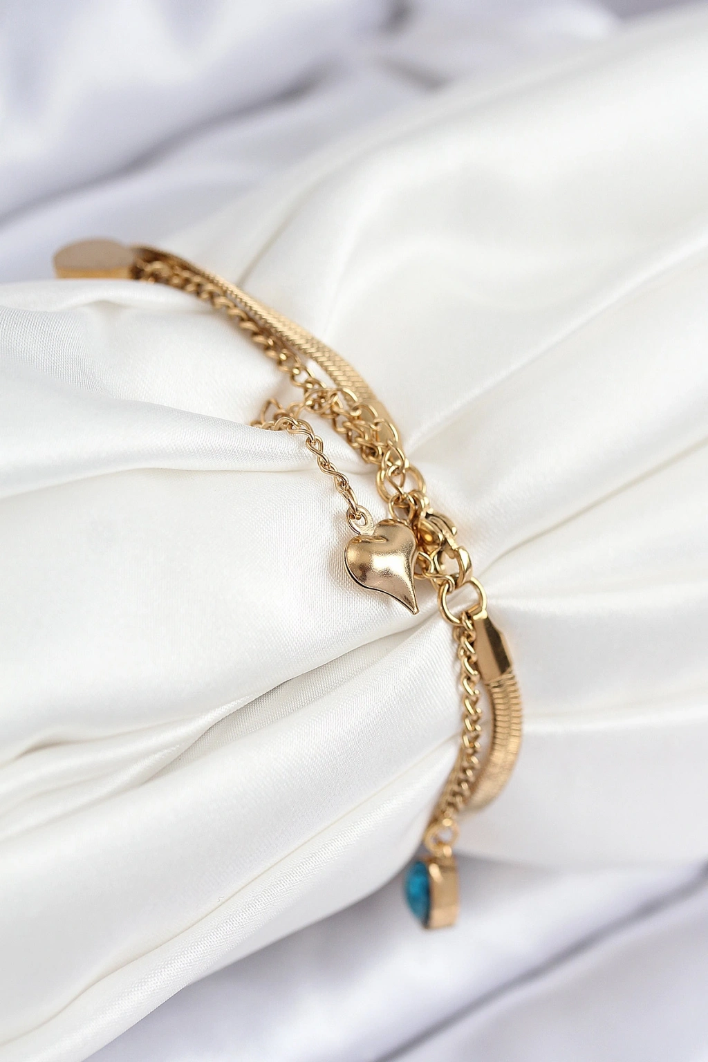 Zirkon Taşlı Gold Renk Tek Taş Model 3'lü Kadın Bileklik Kombini
