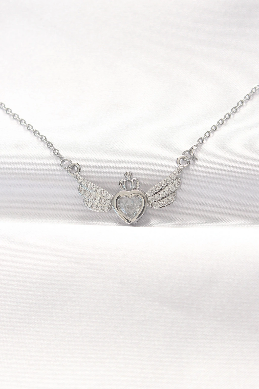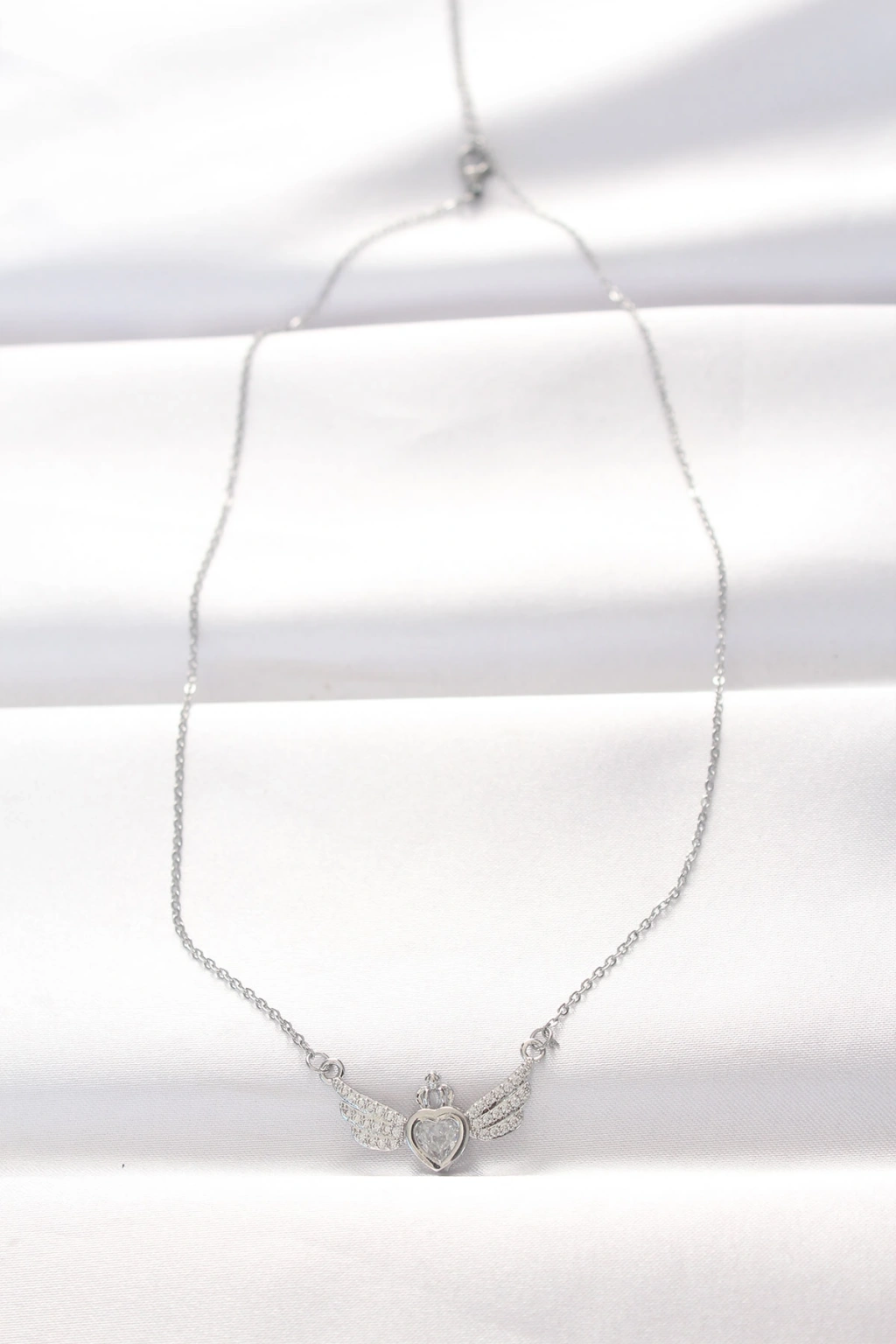 316L Çelik Silver Renk Zirkon Taşlı Kalpli Kanat Kolye