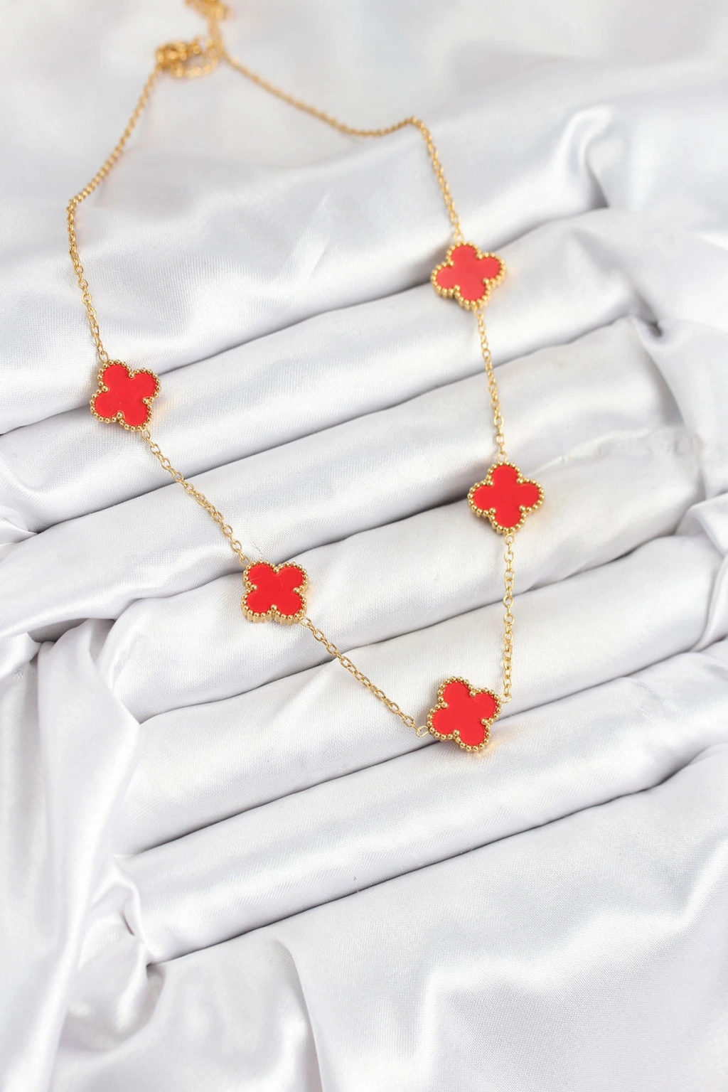 316L Çelik Zincir Gold Kırmızı Renk Yonca Kadın Kolye