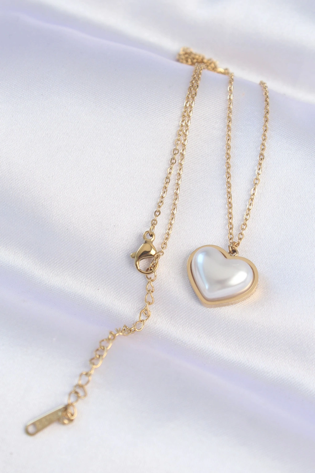 316L Çelik Zincir Gold Renk Beyaz Taşlı Bubble Kalp Kolye
