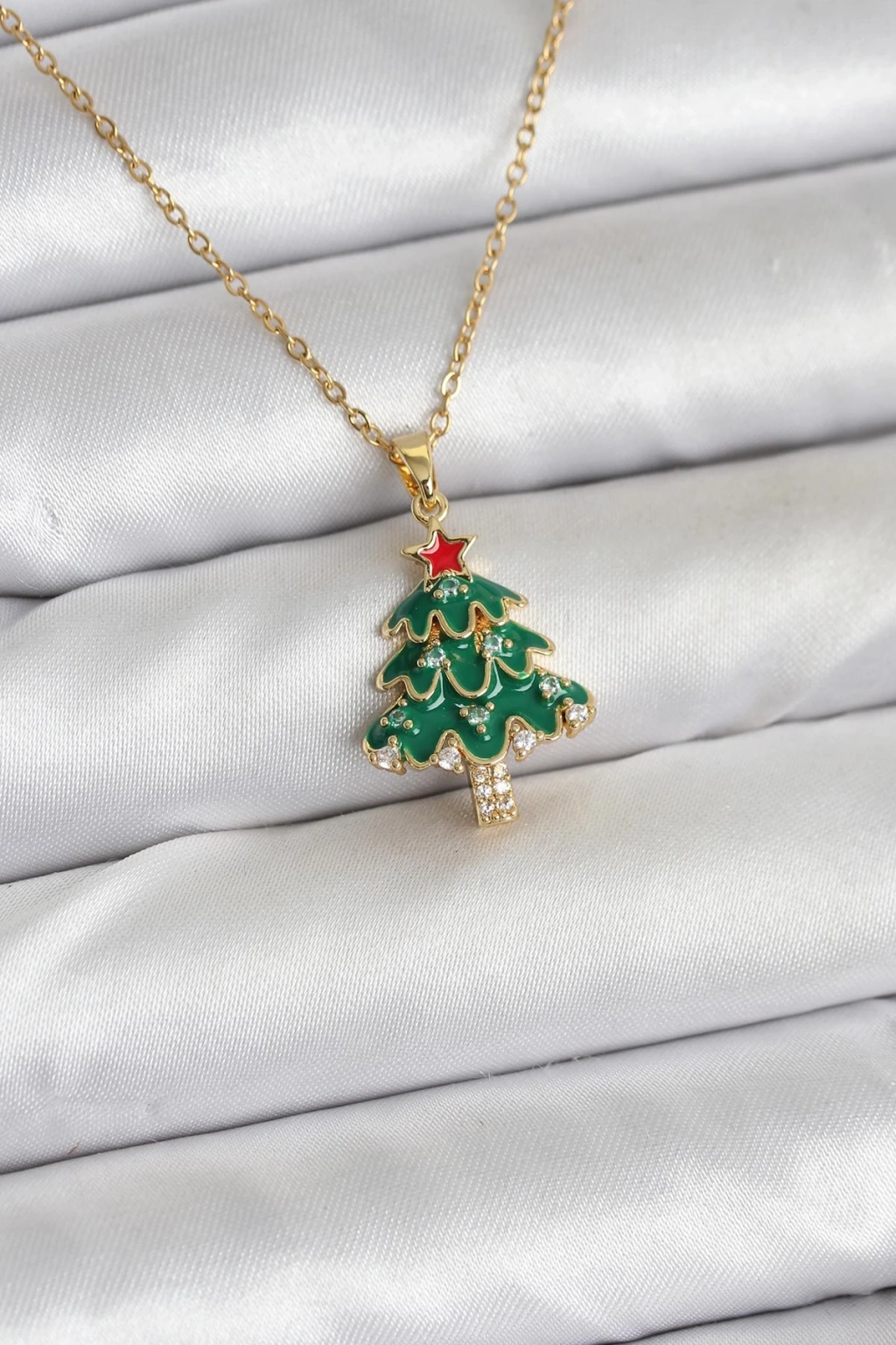 316L Çelik Zincir Gold Renk Çam Ağacı Model Yılbaşı Temalı Kadın Kolye