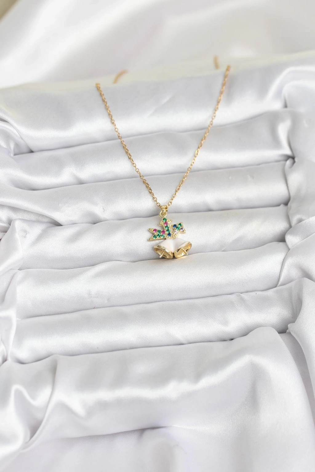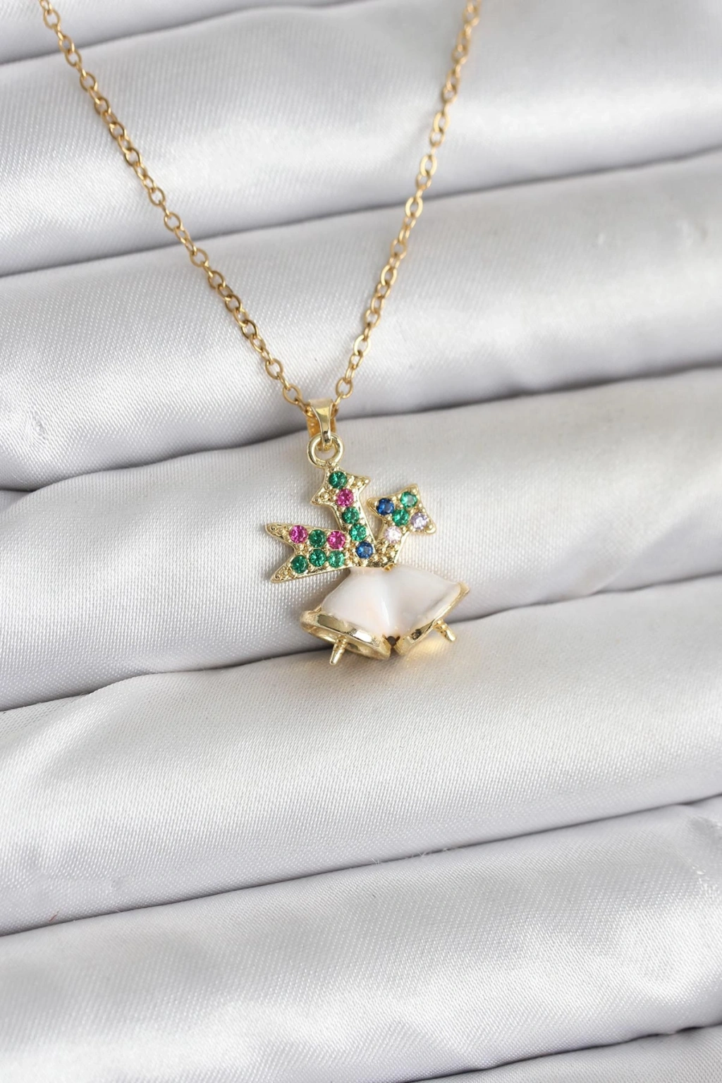 Kalp Detaylı Gold Renk Pirinç Kadın Kolye