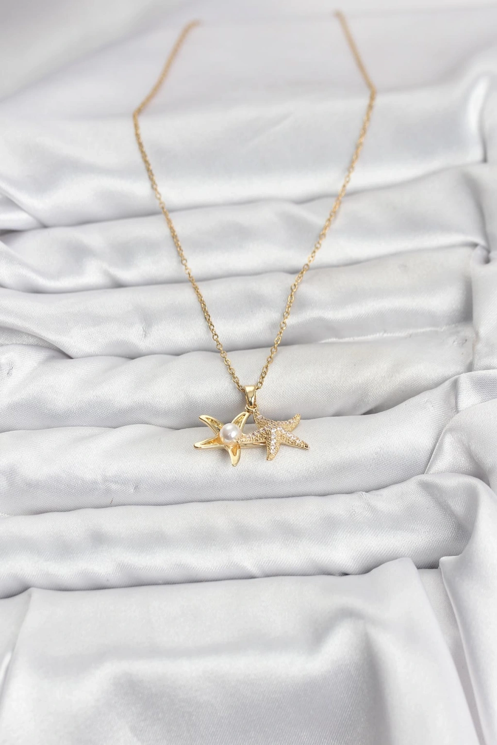 316L Çelik Zincir Gold Renk Deniz Yıldızı Model Zirkon Taşlı Kadın Kolye