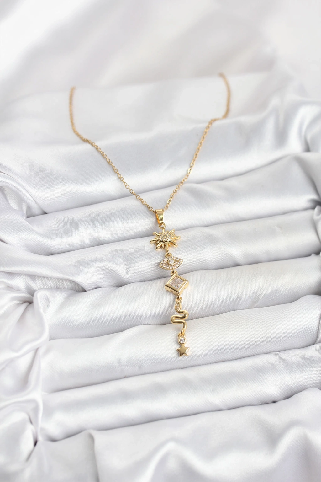 316L Çelik Zincir Gold Renk Güneş ve Enerji Model Kadın Y Kolye