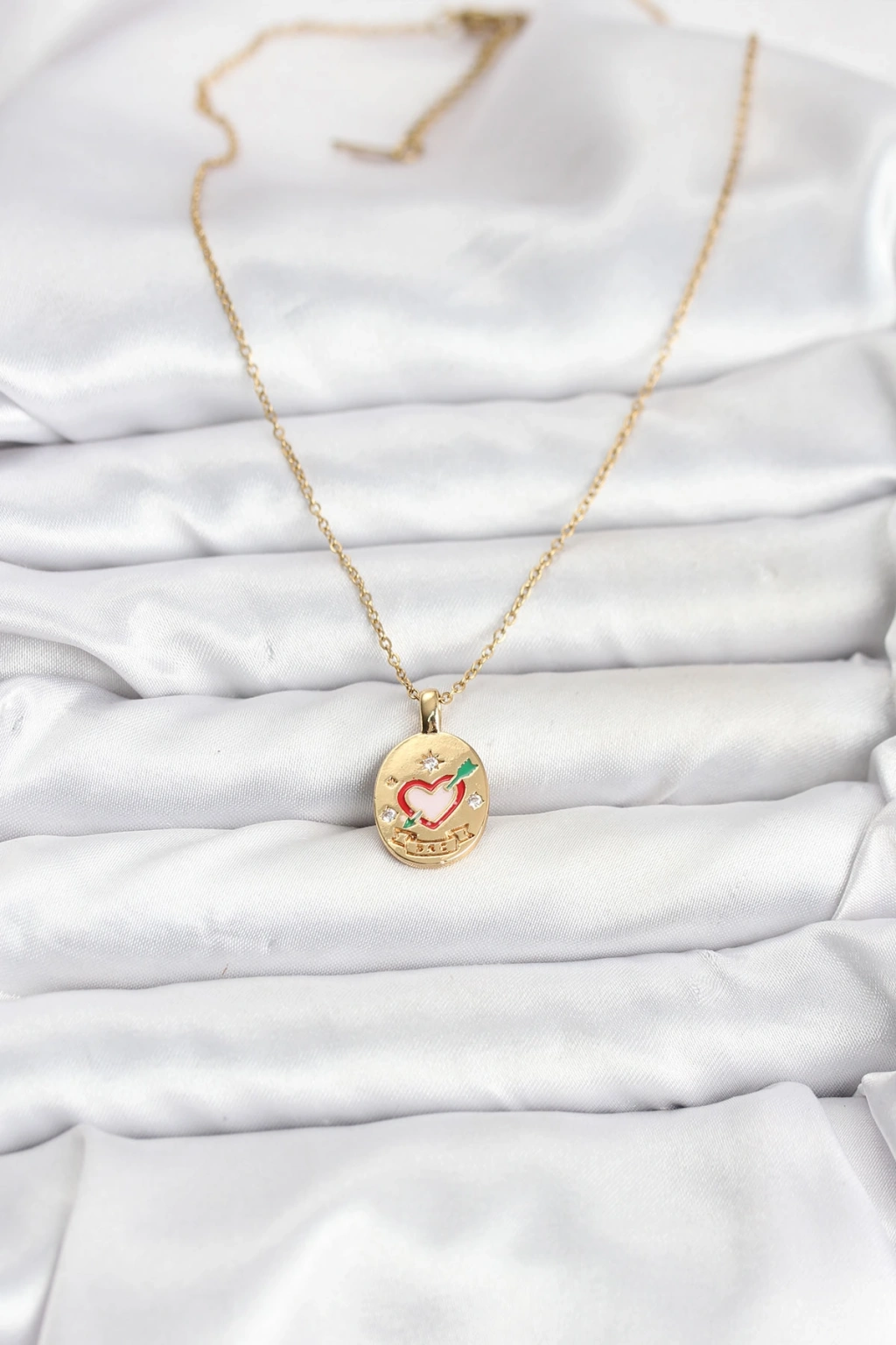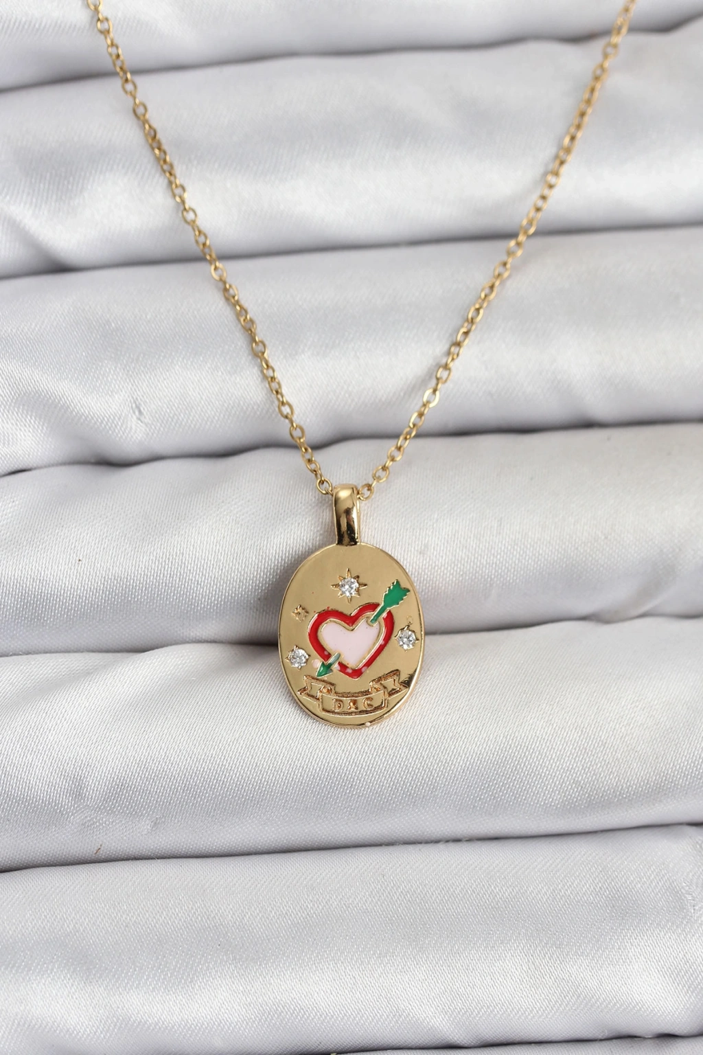 Kalp Detaylı Gold Renk Pirinç Kadın Kolye