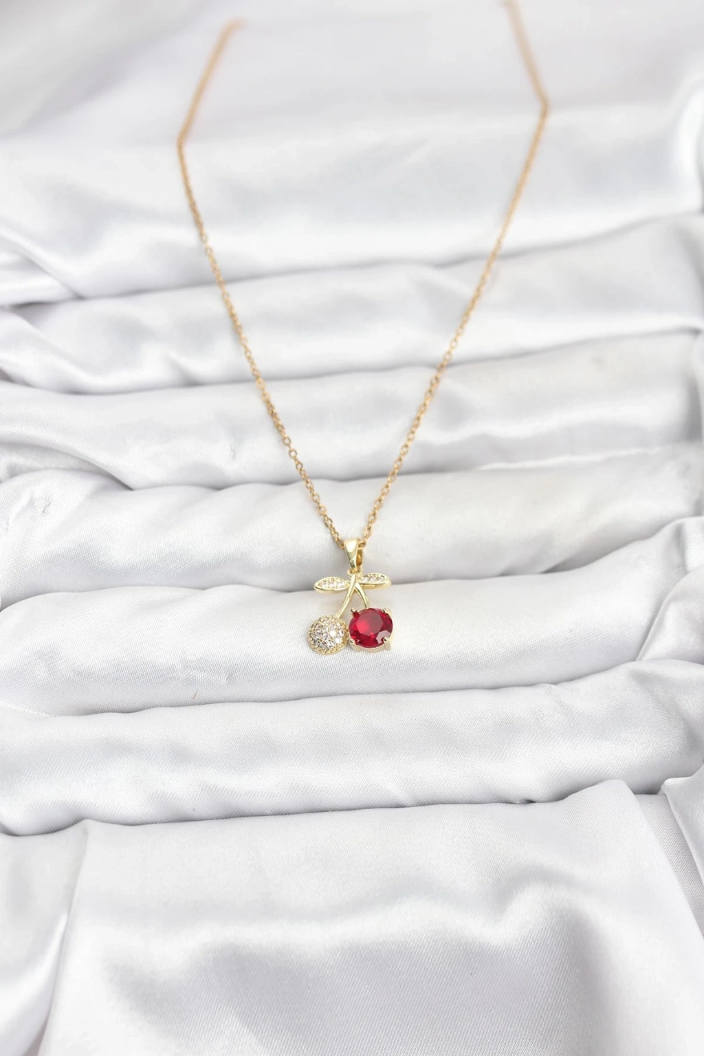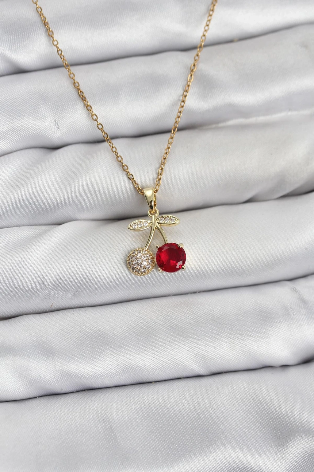 316L Çelik Zincir Gold Renk Kiraz Model Zirkon Taşlı Kadın Kolye