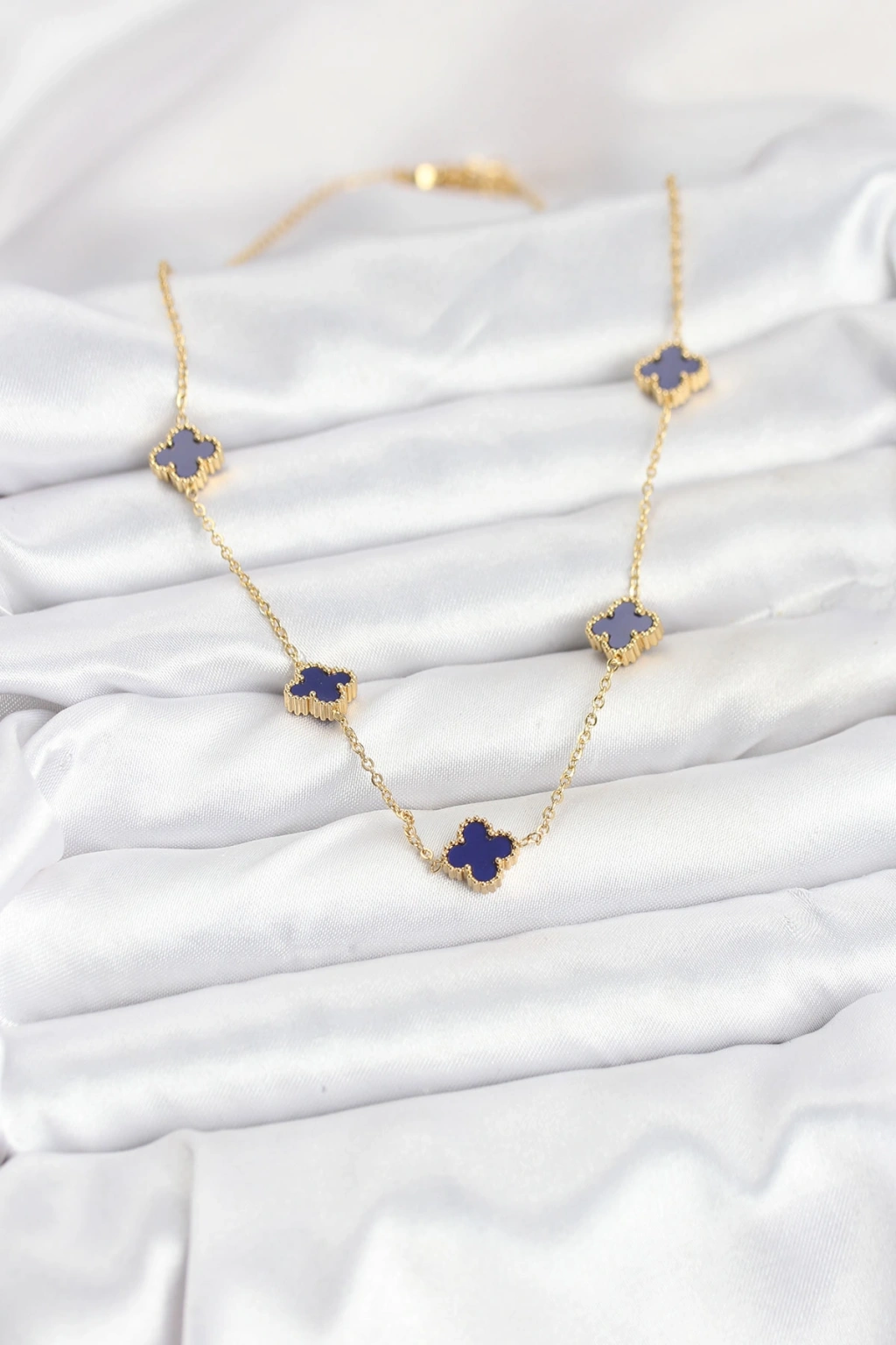 316L Çelik Zincir Gold Renk Lacivert Baby Boy Yonca Kadın Kolye
