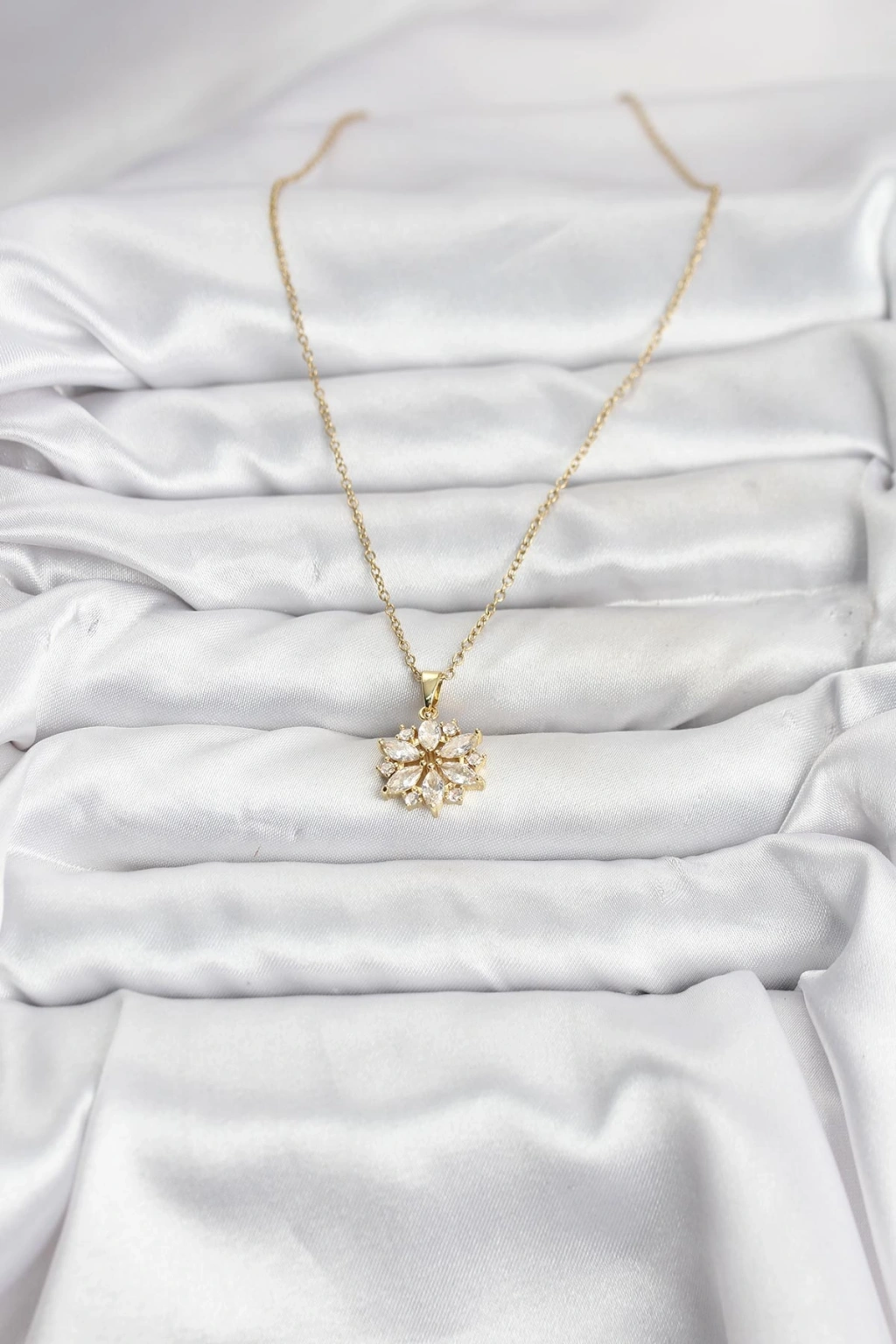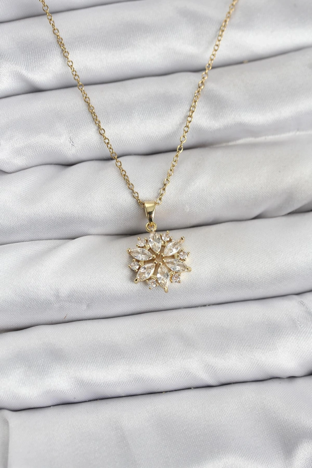 316L Çelik Zincir Gold Renk Lotus Model Zirkon Taşlı Kadın Kolye