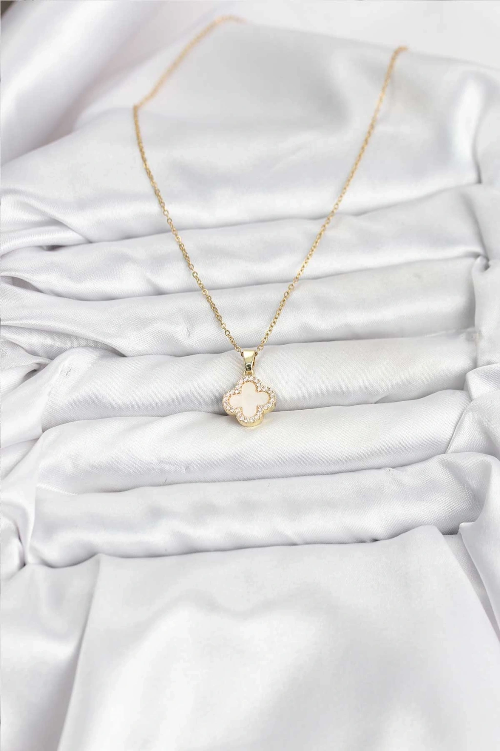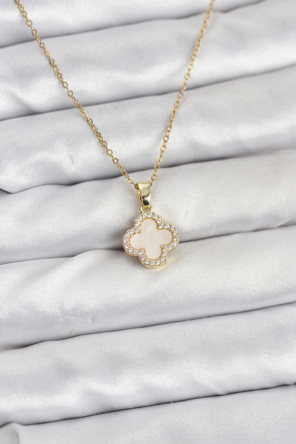 316L Çelik Zincir Gold Renk Sedefli Yonca Kadın Kolye