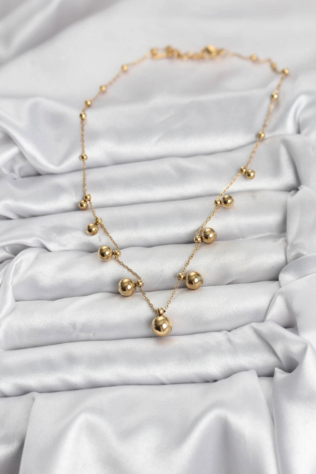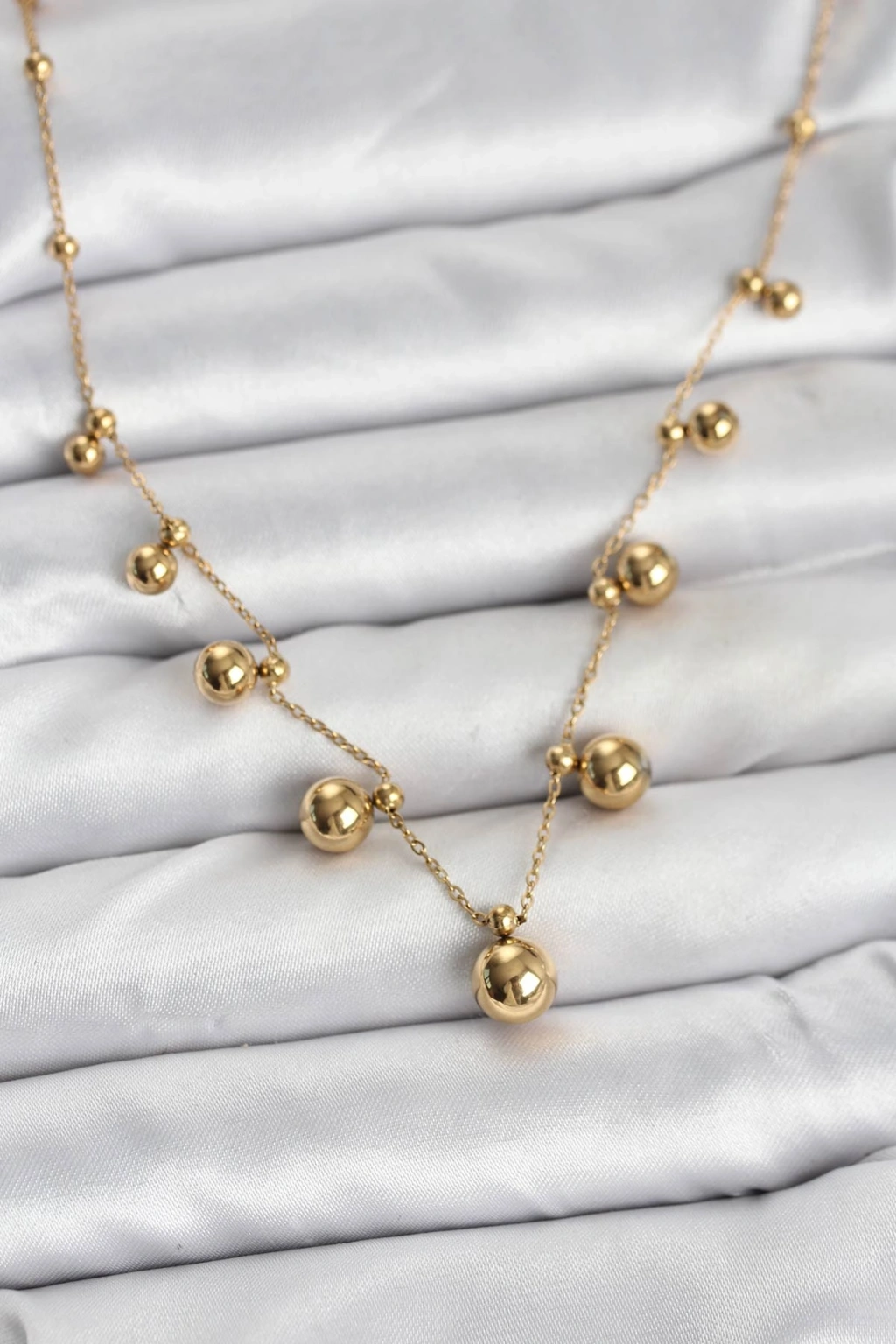 316L Çelik Zincir Gold Renk Topçuklu Kolye